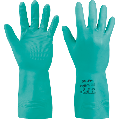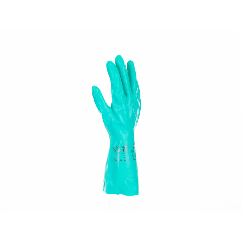 – antistatične rokavice iz 0,38 mm debelega nitrila – z velurjem na notranji strani – reliefna površina na dlani in prstih – skupna dolžina 33 cm