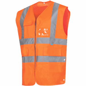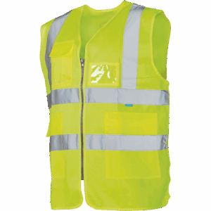 – jopič HI-VIS z zadrgo spredaj – 1 prsni žep z zavihkom – 2 stranska žepa z zavihki – 1 majhen prsni žep za osebno izkaznico – nastavitev s pritiskači na obeh straneh