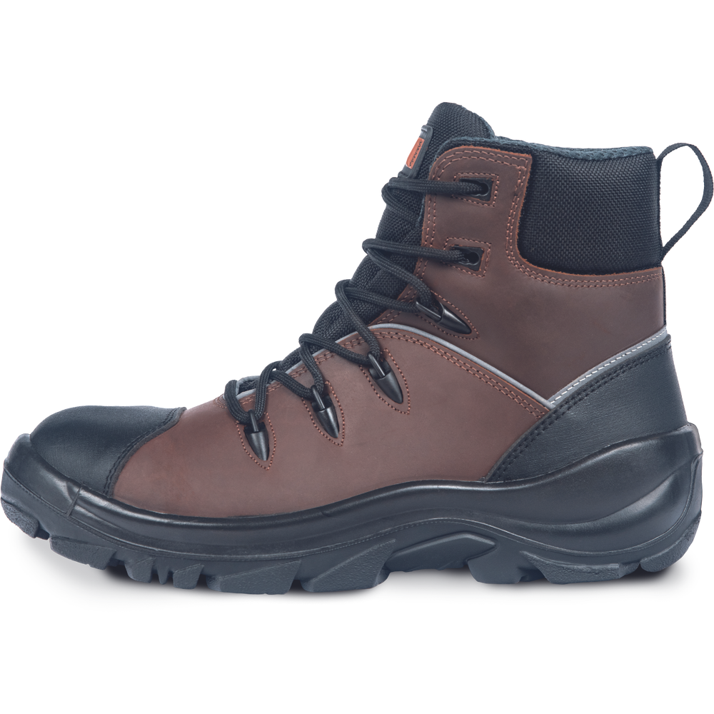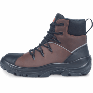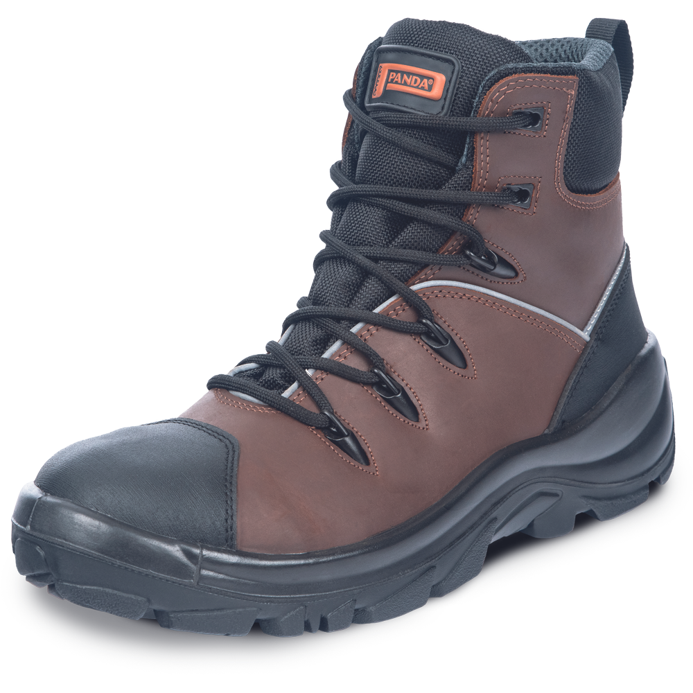 Zelo vzdržljiva delovna obutev ASTA je zasnovana za zahtevne in mokre delovne razmere. Robustni, trpežni, a presenetljivo lahki čevlji imajo vodoodporno membrano, zato so odlična izbira za delo v gozdu, kmetijstvu ali katerem koli drugem okolju z neravnim terenom, nagnjenim k vremenskim spremembam (blato, skale, travnate površine itd.). Zgornji del je izdelan iz polnozrnatega govejega usnja, ki je odporno na obrabo, medtem ko podplat z dvojno gostoto (PU/guma Vibram) poleg udobja zagotavlja tudi vrhunsko odpornost proti zdrsu in odlično stabilnost na neravnih in nestabilnih tleh. Podplat je odporen na kurilna olja in temperature do 300 °C. Antistatična obdelava in absorpcija energije v peti. Na voljo v velikostih 38-48. Izdelano v Italiji pri podjetju PANDA SAFETY.