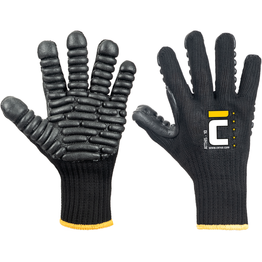 – certificirane protivibracijske rokavice – pletena mešanica bombaža in poliestra – protivibracijske blazinice iz lateksa na dlaneh