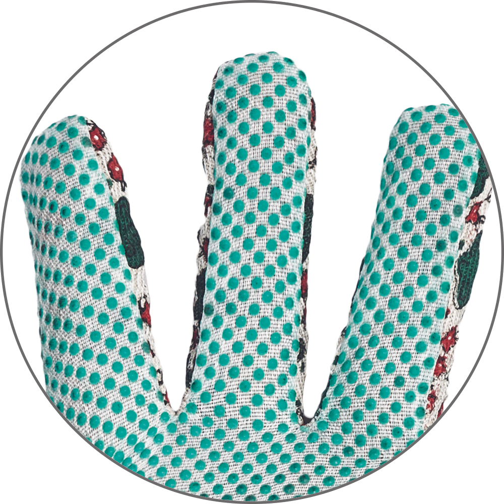 – šivane rokavice iz barvne bombažne tkanine – s PVC pikami na dlaneh in prstih