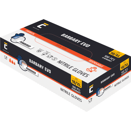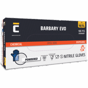 – nitrilne rokavice v prahu za enkratno uporabo – certificirane za neposreden stik z mastno hrano – odporne na viruse in izbrane kemikalije