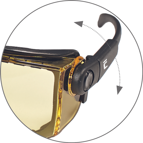 Očala s polikarbonatnimi lečami. Zaščitni razred 1F v skladu z EN 166. Oblika in odstranljiva mehka notranja blazinica zagotavljata popolno prileganje obrazu. Rumeni vizir ščiti pred UV-sevanjem v skladu s standardom EN 170. IR vizirji so primerni za zaščito pred UV, vidnim in IR sevanjem v skladu s standardom EN 169.
