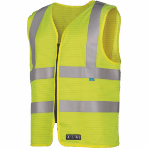 – negorljiva in antistatična jopica HI-VIS – V-izrez – zapiranje na zadrgo – negorljivi 5 cm odsevni trakovi
