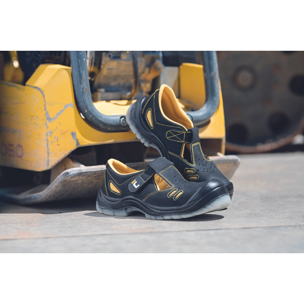 Varnostni sandali z nekovinskim prstnim pokrovom in vložkom iz aramida, odpornim proti predrtju. Podplat iz PU/TPU. Zgornji del iz visokokakovostnega usnja nubuk. Trak z velcro zapenjanjem zagotavlja popoln oprijem uporabnika pri delu.