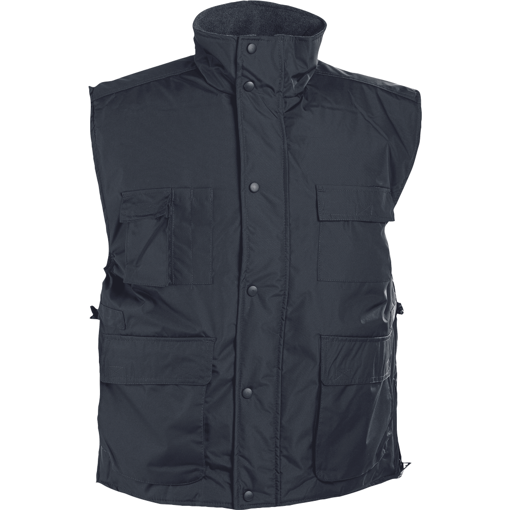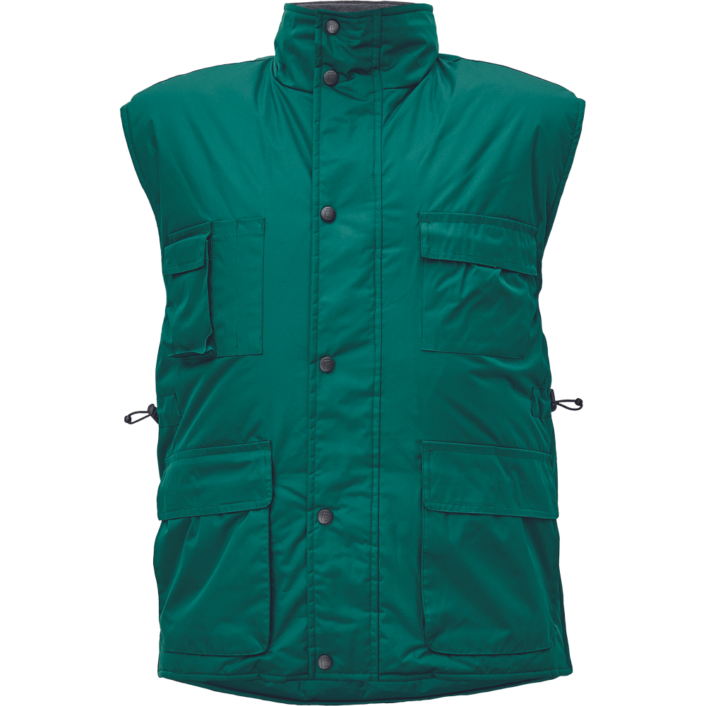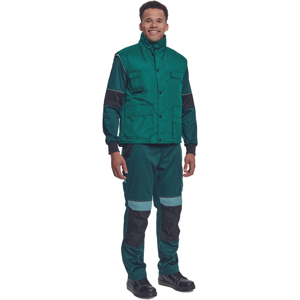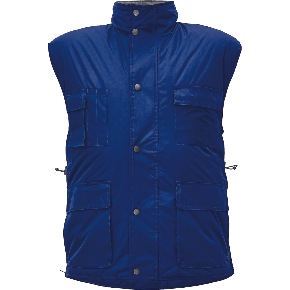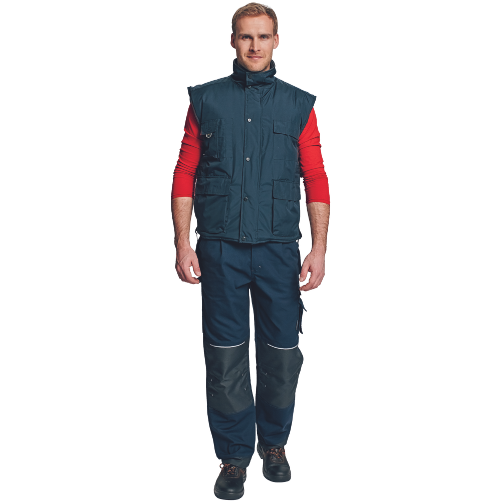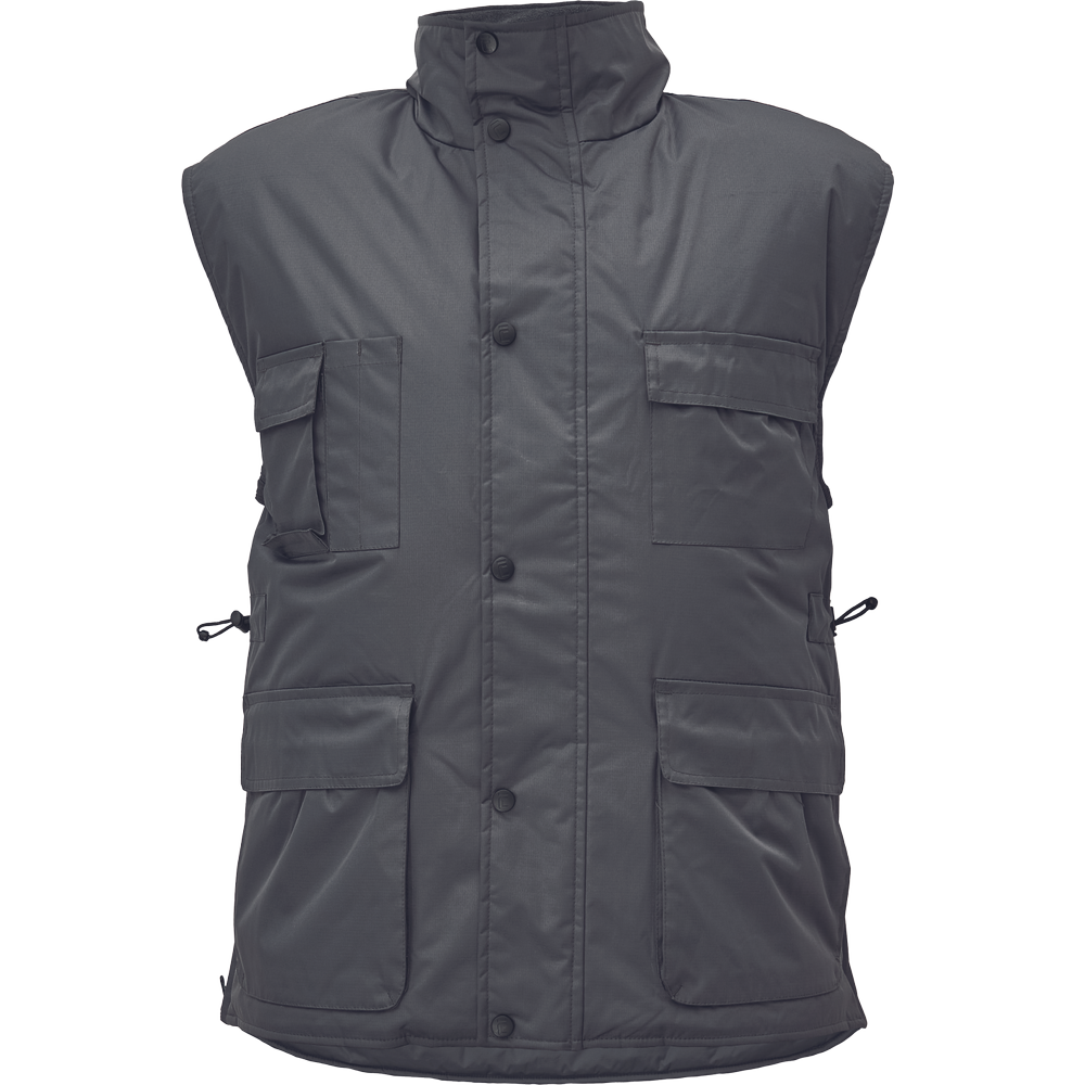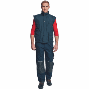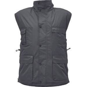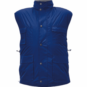 – termoizoliran moški nepremočljiv zimski telovnik s podlogo in zadrgo – podaljšan hrbtni del – 2 velika sprednja žepa, 2 prsna žepa – vrvica v pasu