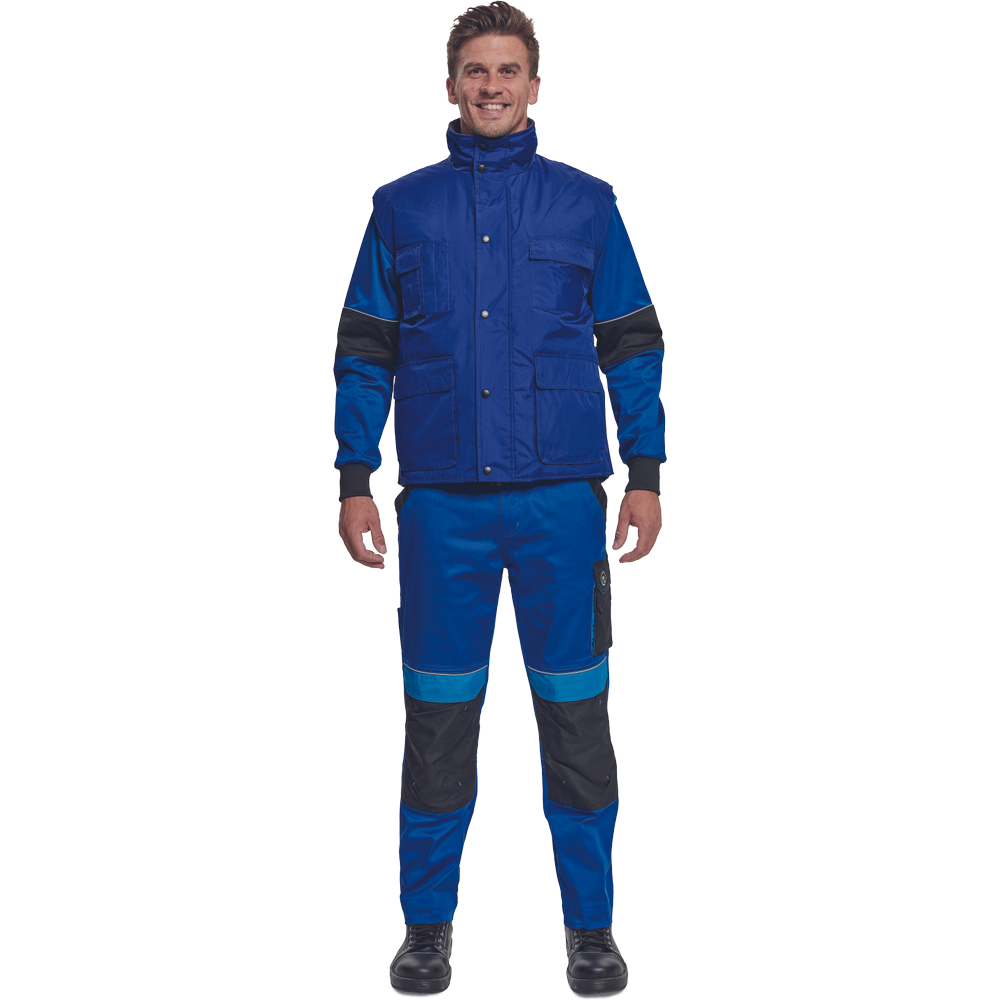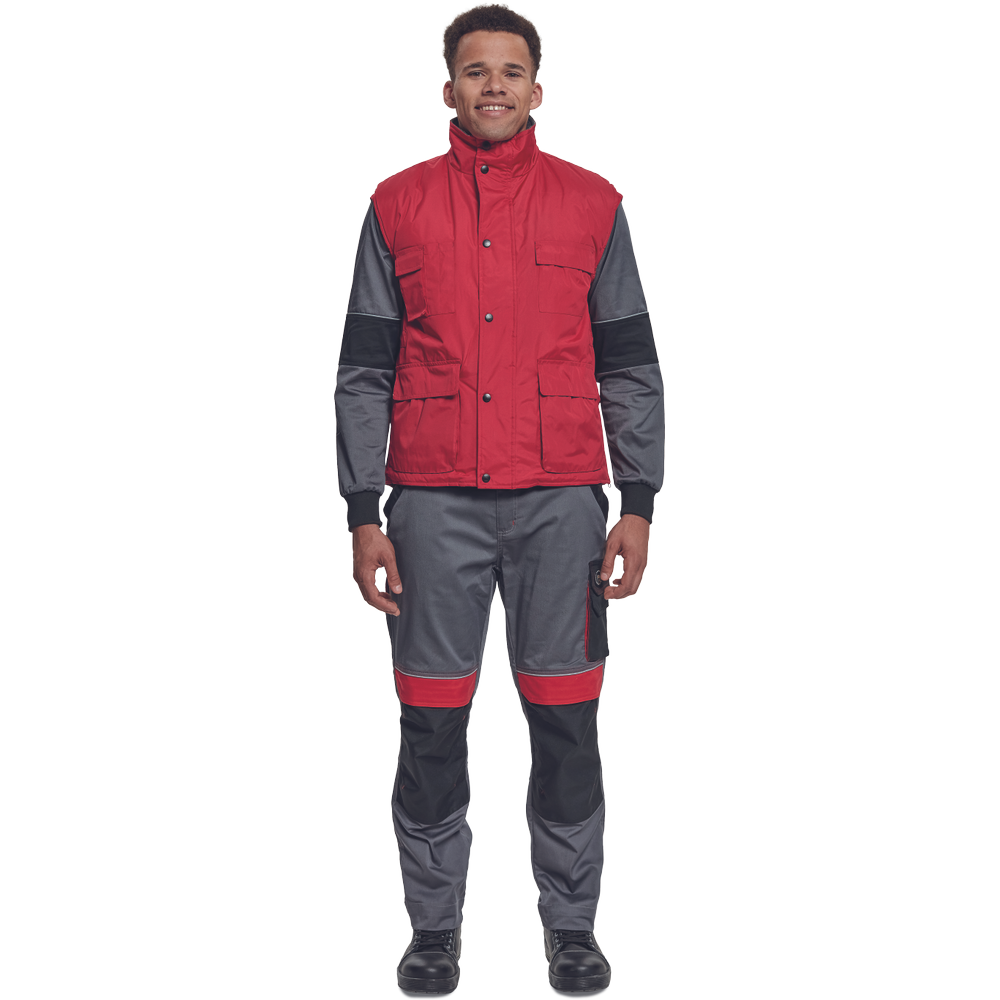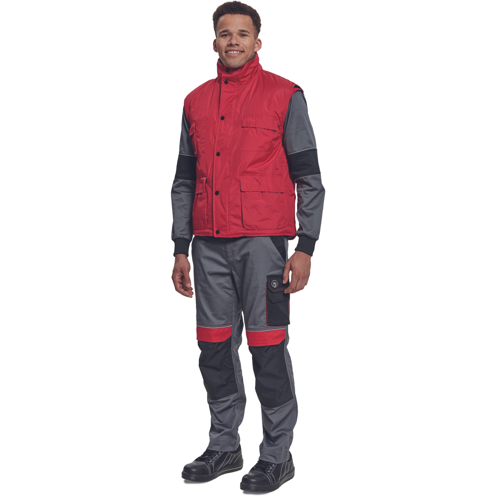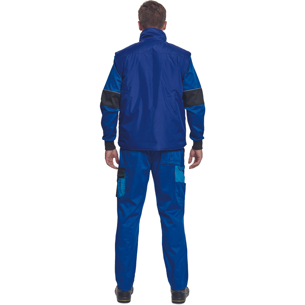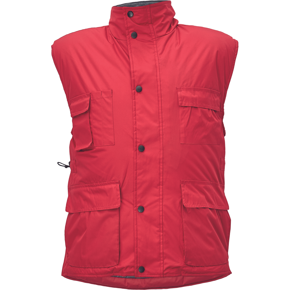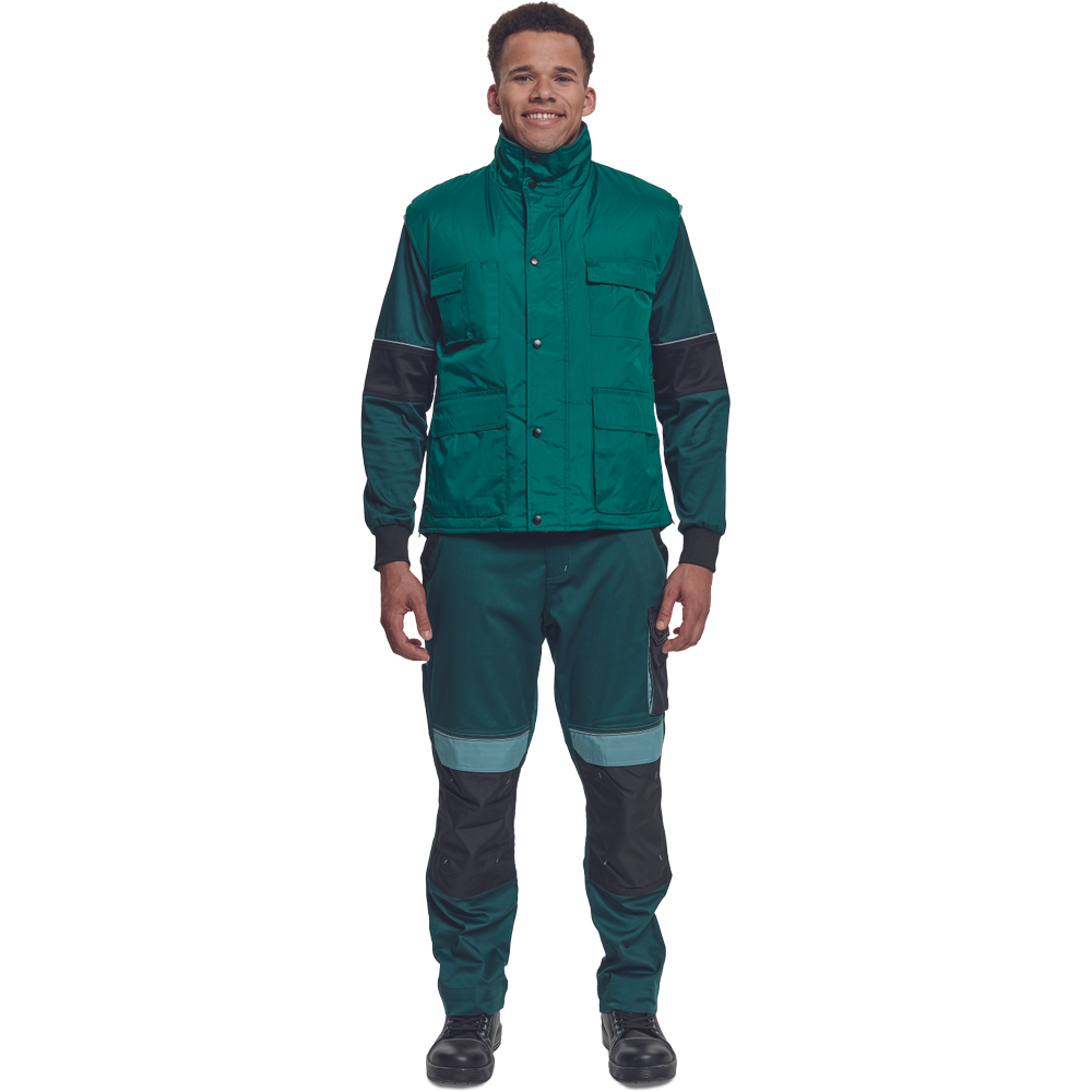 – termoizoliran moški nepremočljiv zimski telovnik s podlogo in zadrgo – podaljšan hrbtni del – 2 velika sprednja žepa, 2 prsna žepa – vrvica v pasu