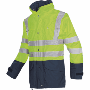 – Jakna HI-VIS s snemljivo kapuco – 2 prsna žepa, 2 stranska žepa, 1 žep Napoleon – zračenje pod pazduho – elastična vrvica v spodnjem delu pasu – nastavitev rokavov z velurco