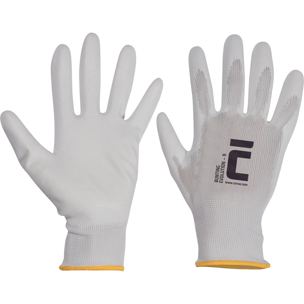 – pleten brezšivni poliester – rokavice s tanko plastjo poliuretana na dlani in prstih – elastična manšeta