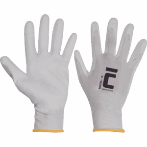 – pletene brezšivne rokavice iz najlona, s tanko plastjo poliuretana na dlani in prstih – elastična manšeta