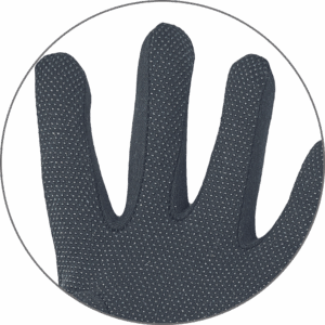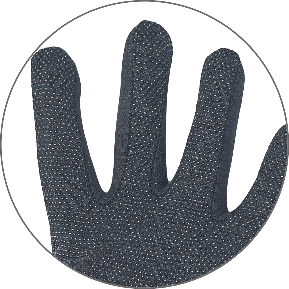 – šivane rokavice iz bombažne pletenine – s PVC pikami na dlaneh in prstih – klin na zgornjem delu zapestja – brez manšete