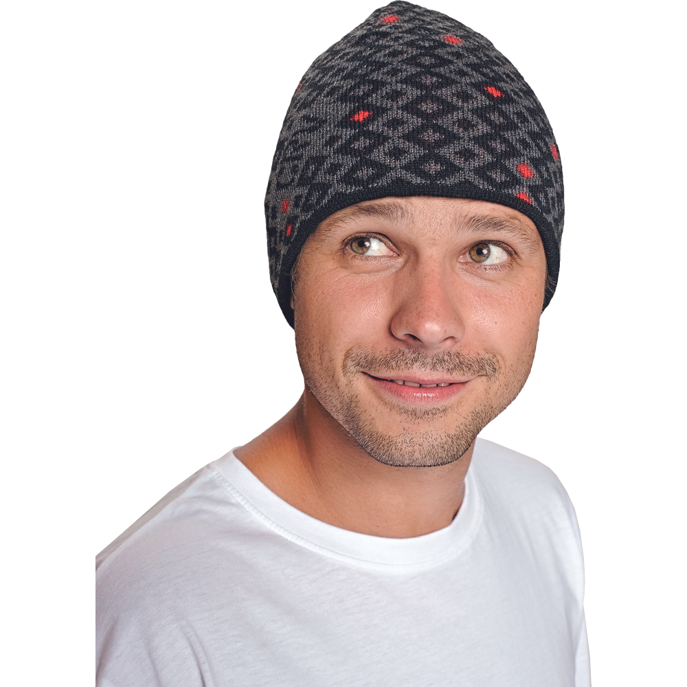 – pletena kapa s sodobnim vzorcem – ojačana vetrovna plast