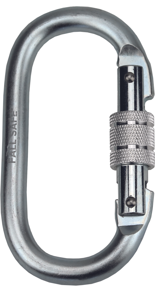 Cerva pocinkana jeklenka ovalna karabinka z varnostnim vijakom; specifikacije: trdnost 25 kN; odprtina 18 mm; material jeklo; dimenzija 59 x 110 mm; izpolnjuje standarde CE EN 362-B in EN 12275-H