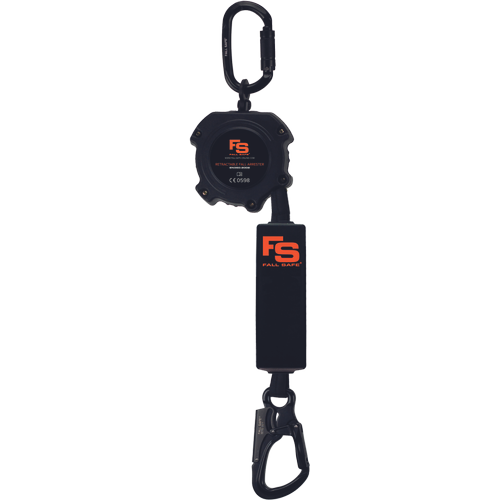 FS930 is a lightweight, durable and compact fall arrest block. It has two aluminium alloy connectors and an energy absorber integrated. The retractable system is composed by a 25 mm Dyneema® webbing inserted in a plastic housing. EN360