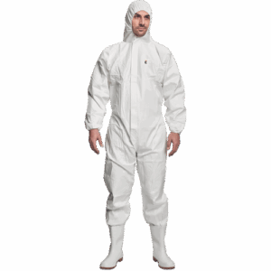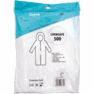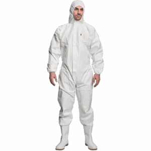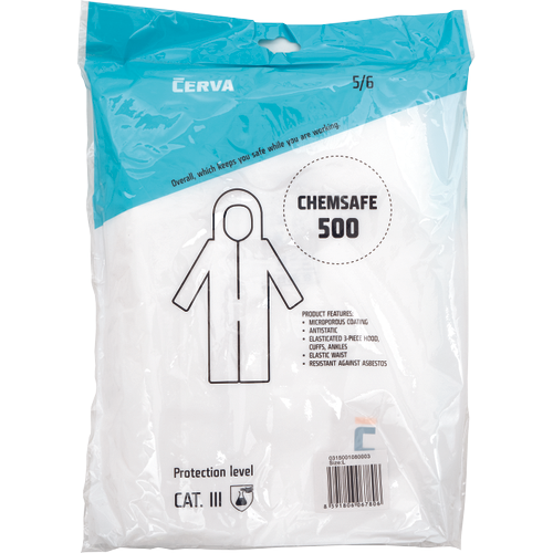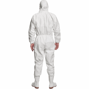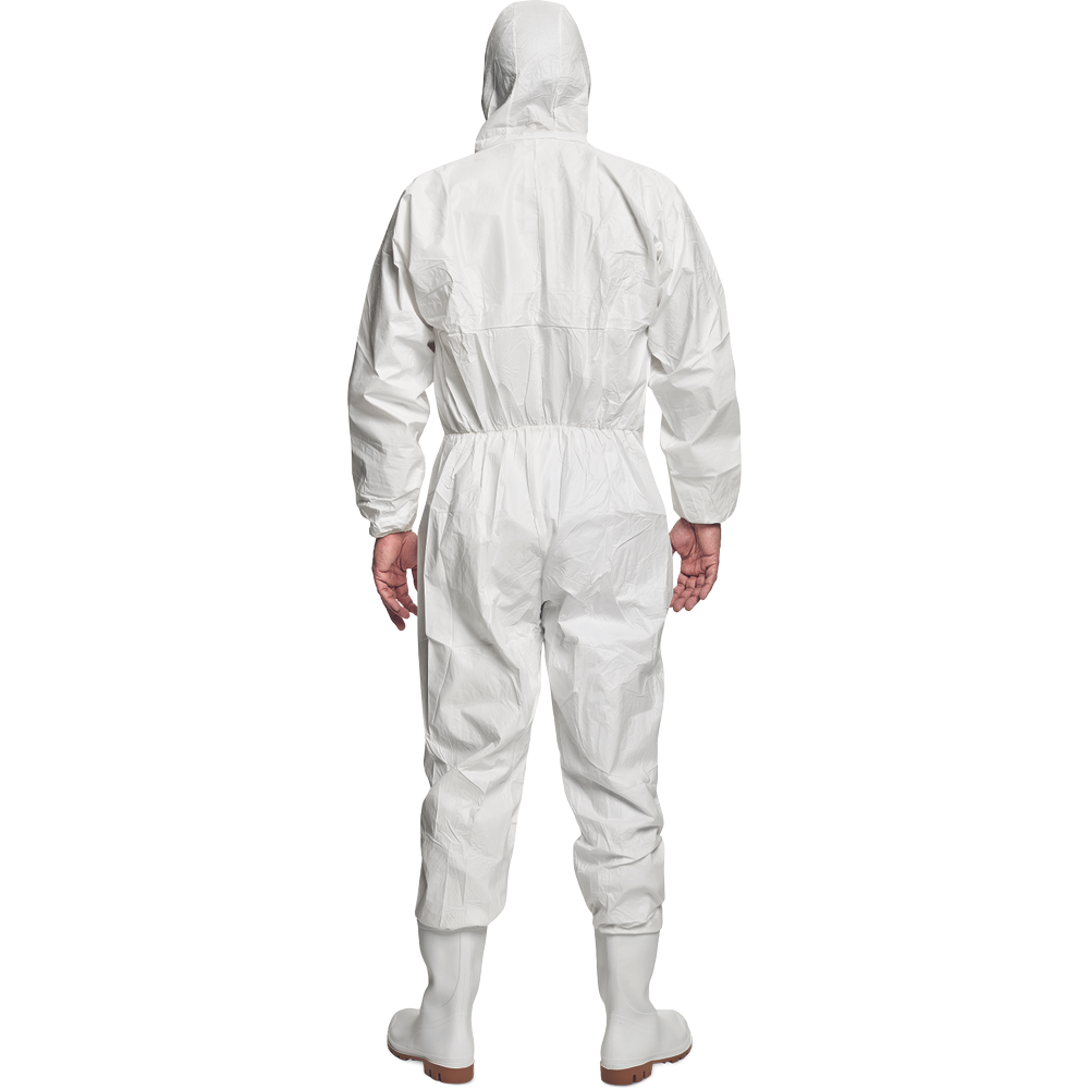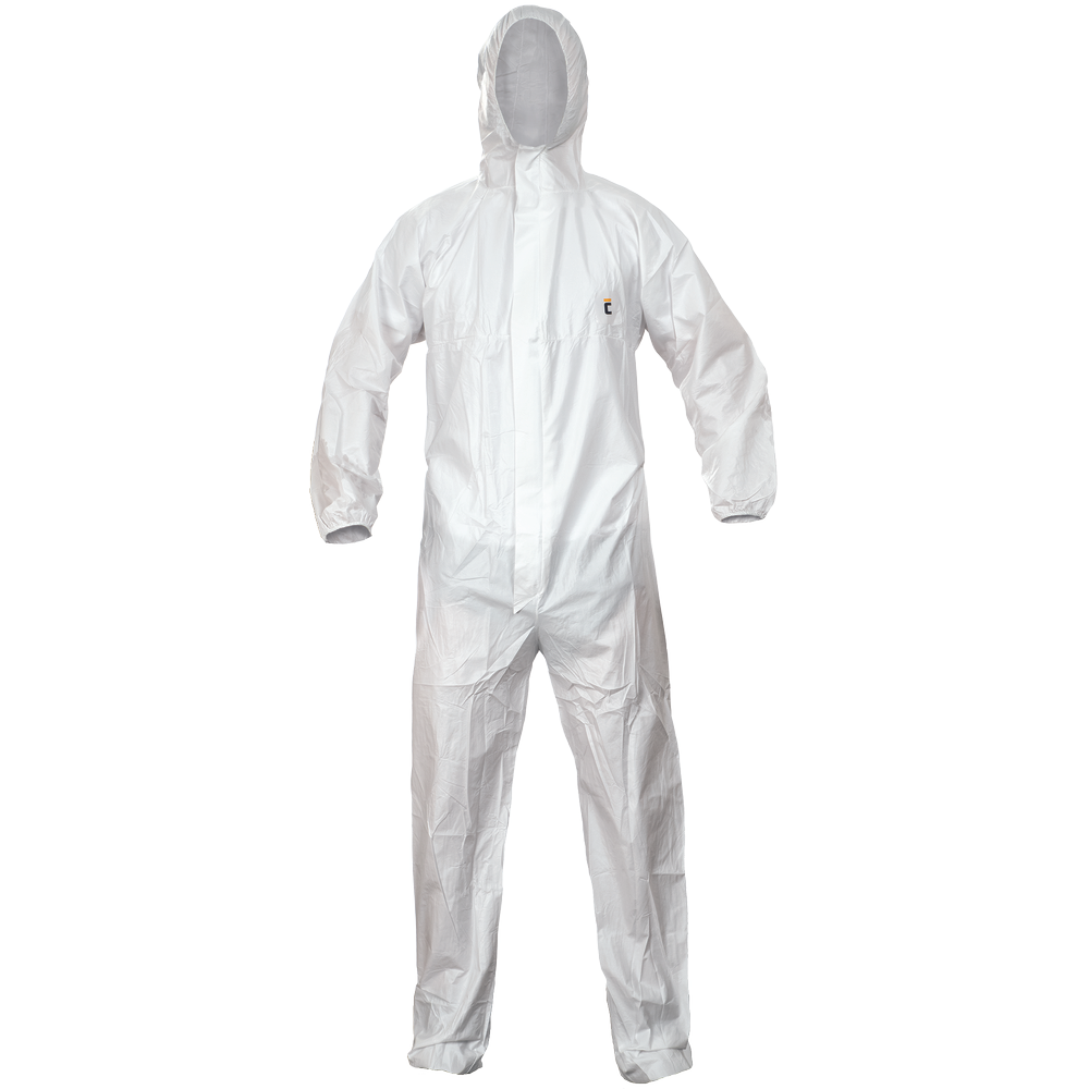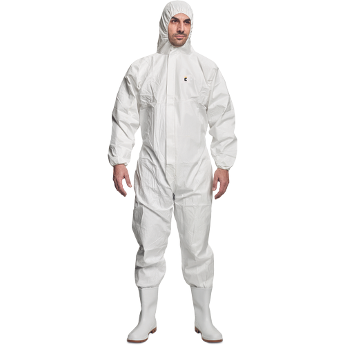 – zaščitna antistatična obleka za enkratno uporabo s kapuco, mikroporoznim slojem, ki prepušča paro – z zatesnjenimi šivi, zadrgo in gumijastimi zapestji in nogami – varuje pred nevarnimi mikroorganizmi – za zaščitno obleko pred tekočimi kemikalijami spada v kategorijo CE III – za zaščitno obleko pred trdnimi delci in aerosoli v kategorijo tipa 5B – za zaščitno obleko pred omejenim brizganjem v kategorijo tipa 6B – za zaščitno obleko pred delci radioaktivnega onesnaženja spada v razred 1