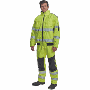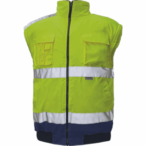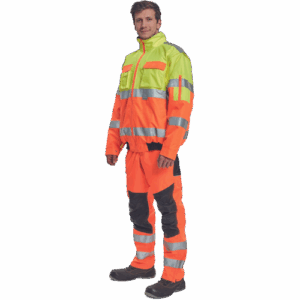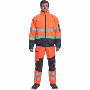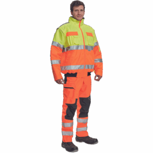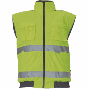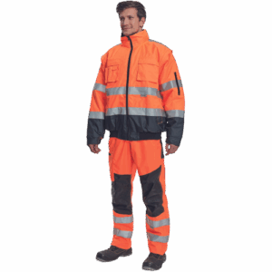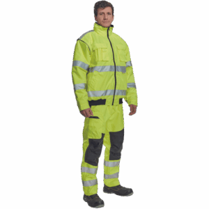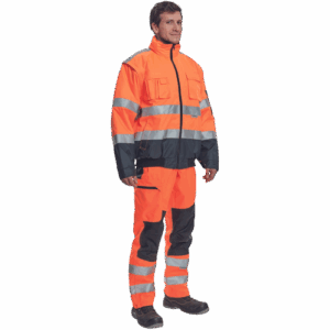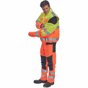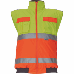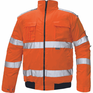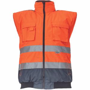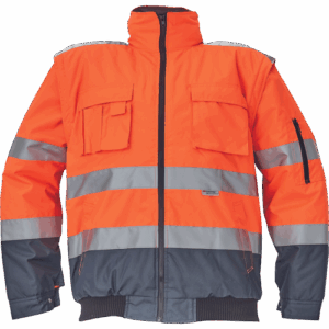 – moška HI-VIS in vodoodporna zimska jakna s snemljivimi rokavi – kapuca v ovratniku – zračna – zatesnjeni šivi – 3M odsevne črte okoli pasu in rokavov – 2 stranska žepa – 2 prsna žepa – 1 žep na levem rokavu – nastavitev spodnjega roba rokavov – elastičen rob pasu