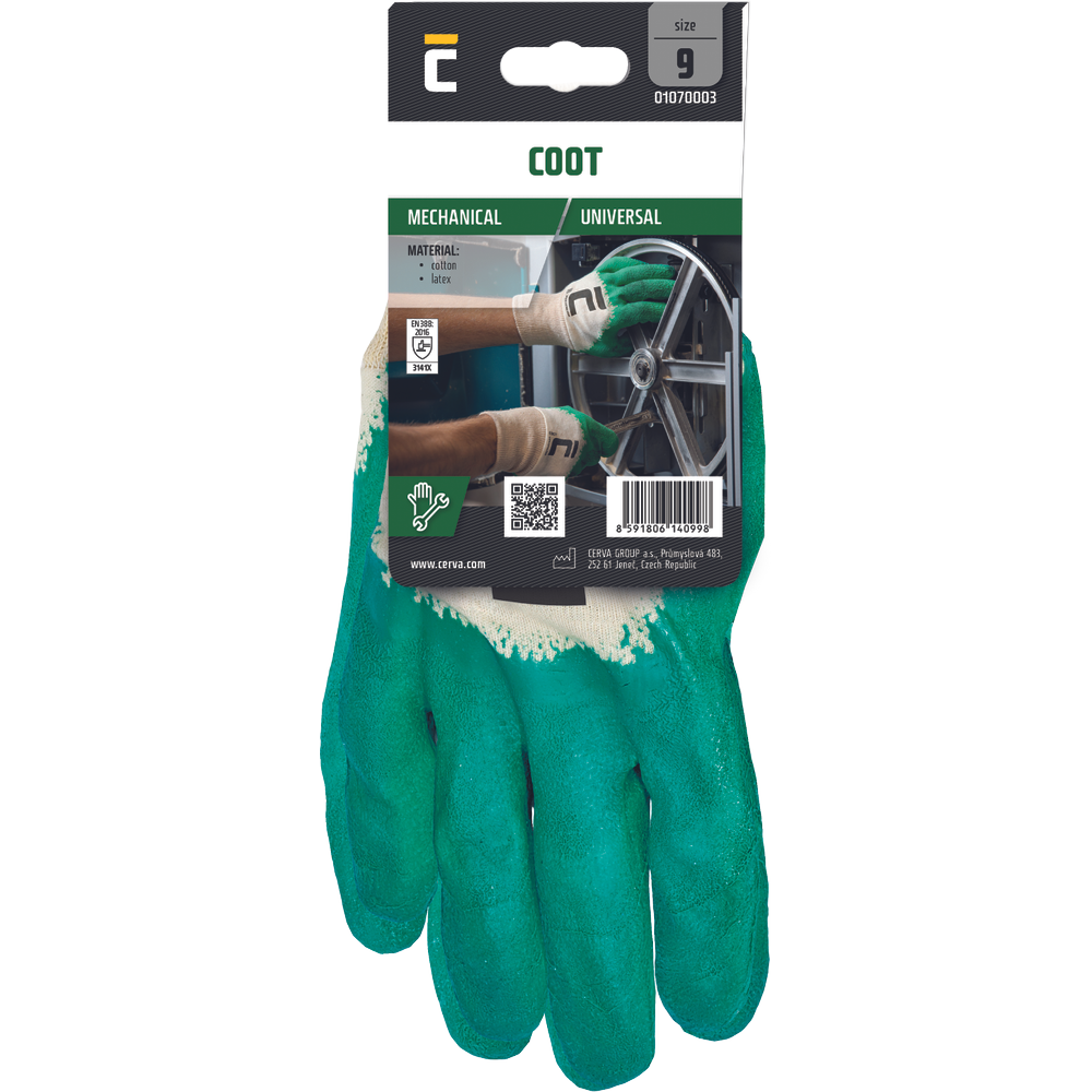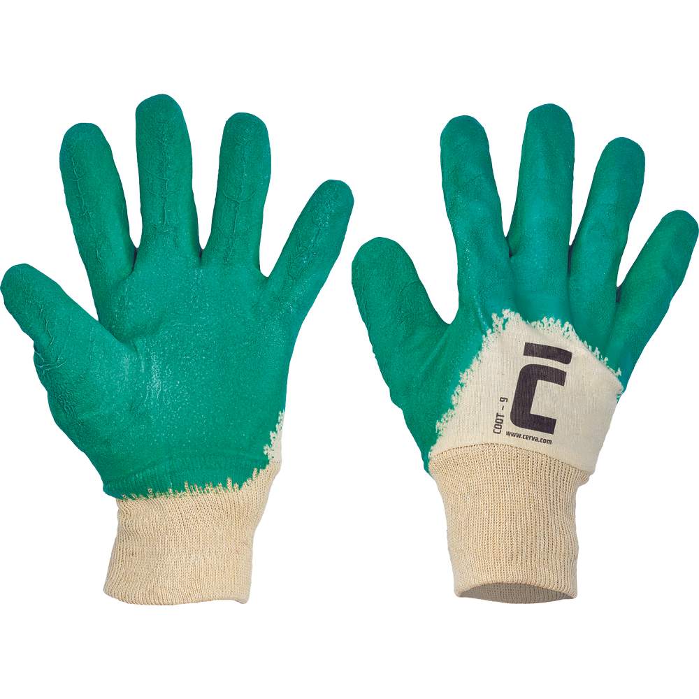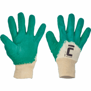 – šivane rokavice iz bombažnega interlocka – s protizdrsno površino – elastično pleteno zapestje – dlani in prsti prevlečeni z gumo