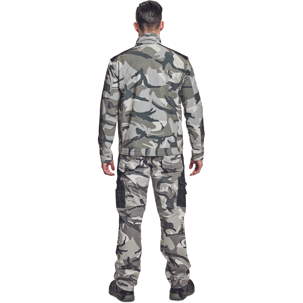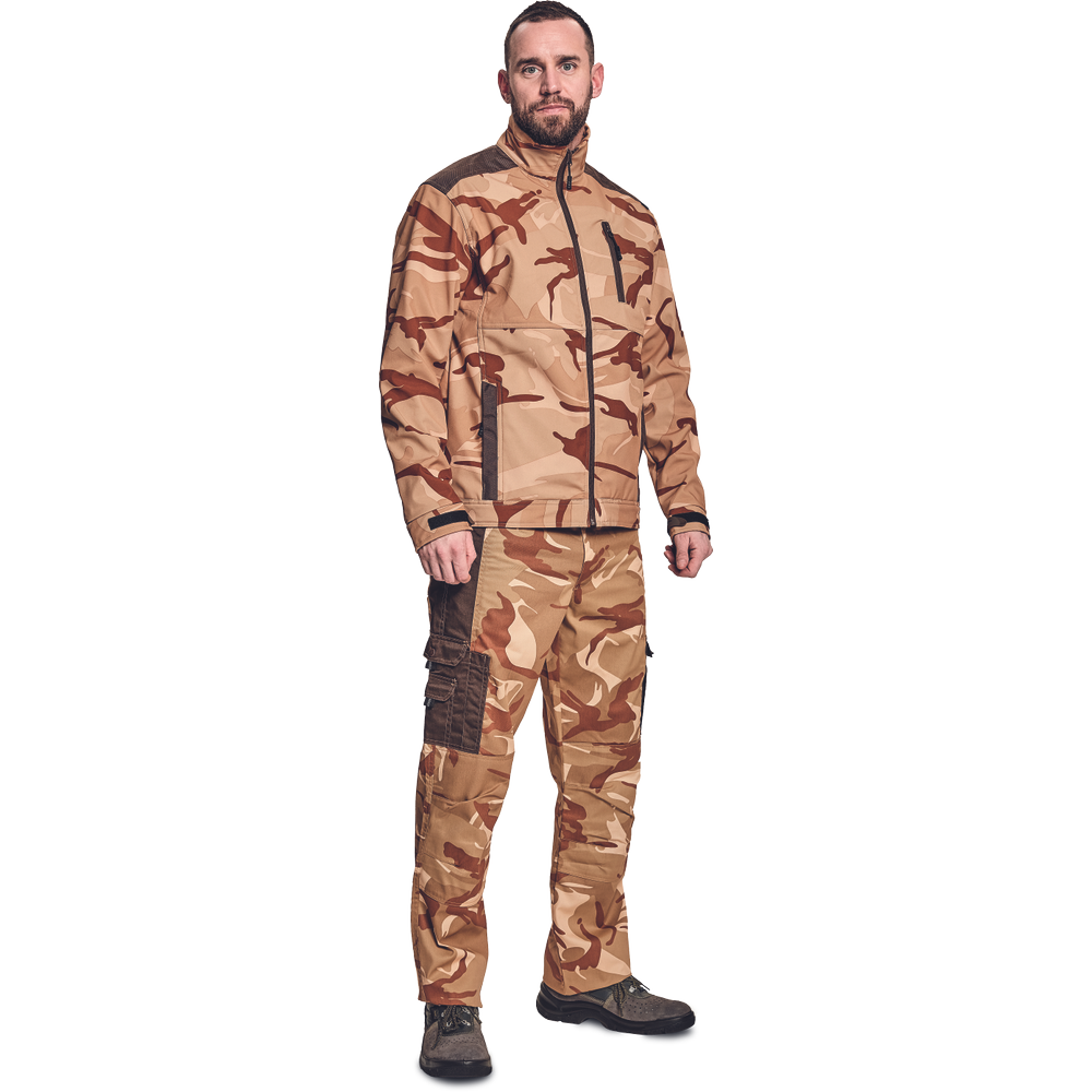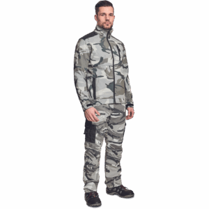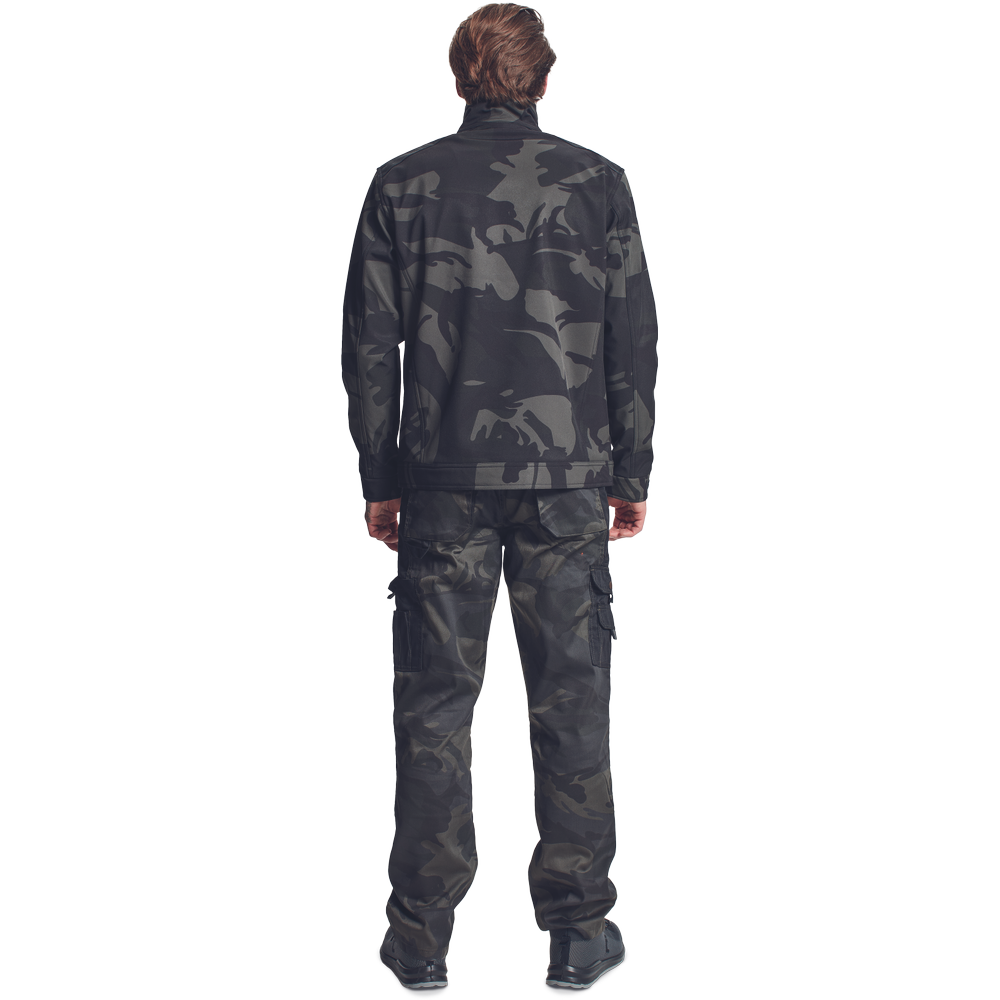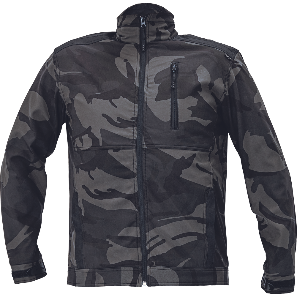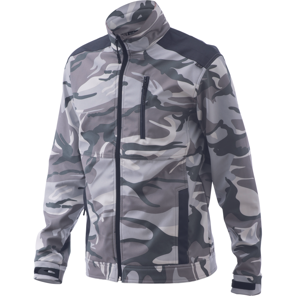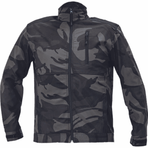 – moška softshell jakna s stoječim ovratnikom in zadrgo – vodoodporna in zračna – ojačitve Oxford na ramenih – 2 stranska žepa, 1 prsni žep – velcro nastavitev širine manšete