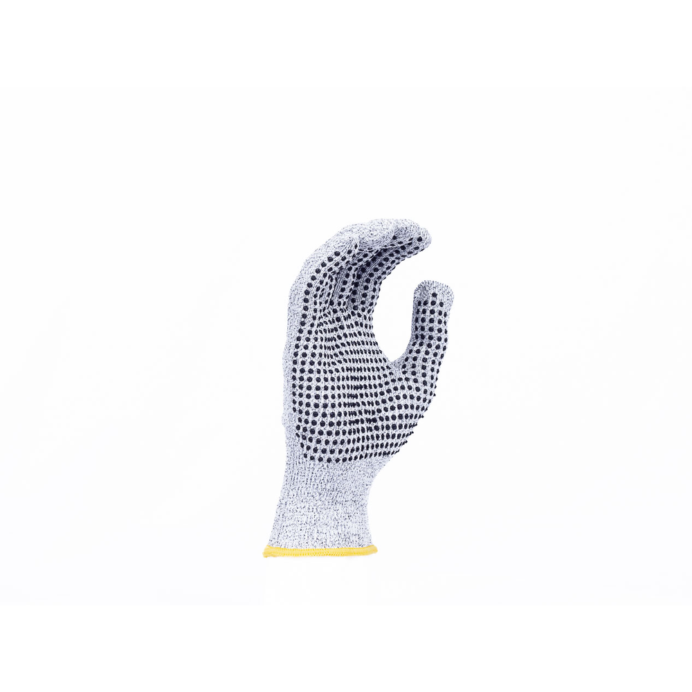 – pletene brezšivne rokavice iz steklenih vlaken, Spandexa in najlona – s PVC pikami na dlaneh in prstih – stopnja odpornosti na rezanje C
