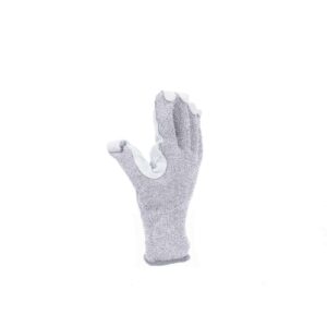 – pletene brezšivne rokavice iz modificiranih steklenih vlaken, Spandexa in najlona – z dlanjo in prsti, ojačanimi s kravjim usnjem – dvojna plast med palcem in kazalcem – prekrite konice prstov – razred odpornosti proti prerezom E