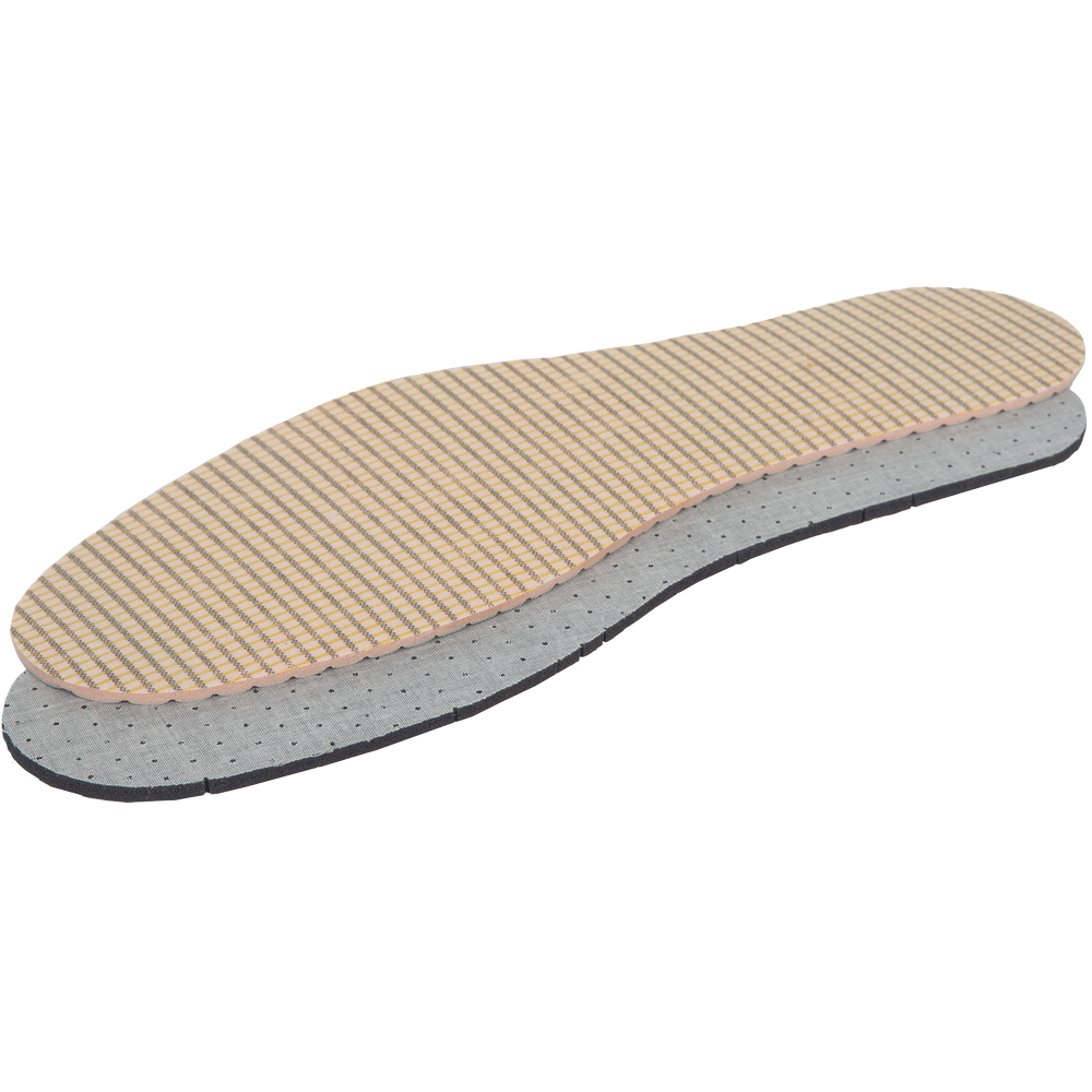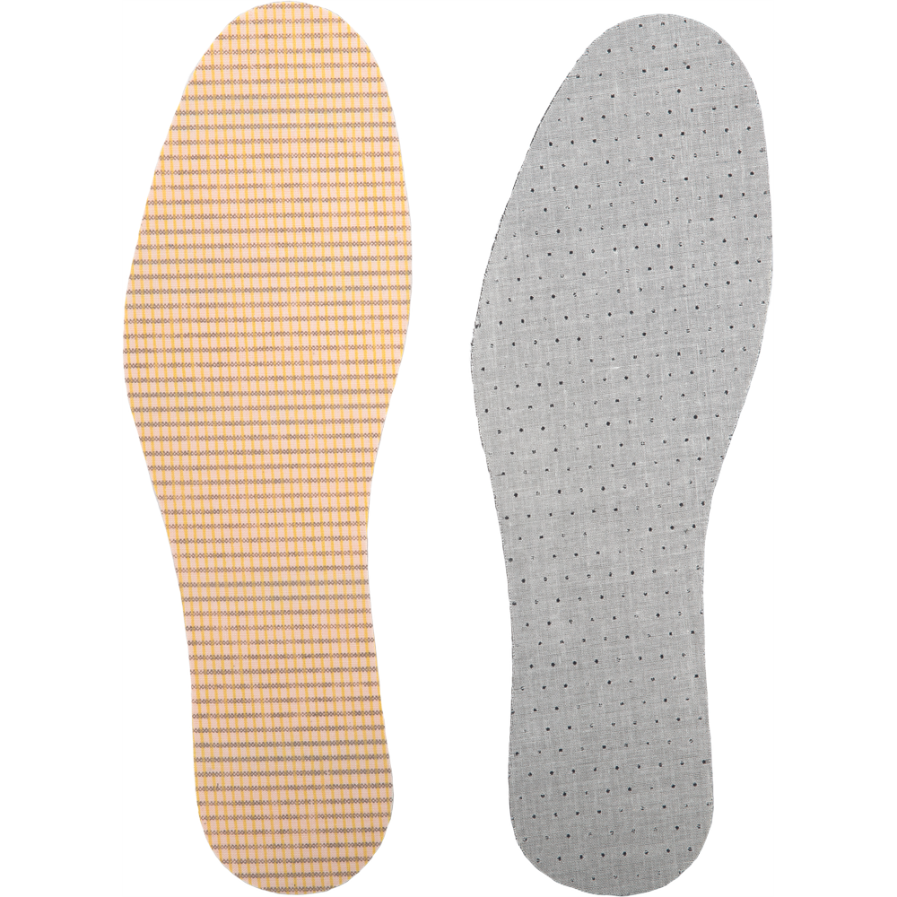Pakiranje vsebuje dva para univerzalnih vložkov, namenjenih vsem vrstam obutve, posebej za poletno sezono. En par je izdelan iz tekstila in lateksne pene z dodatkom aktivnega ogljika, ki razgradi neprijeten vonj. Mehka perforacija zagotavlja zračnost in občutek suhosti med nošenjem. Drugi par vložkov je sestavljen iz lateksne pene in ima aromatične lastnosti za svež občutek na nogah. Oba vložka se lahko po kopiji izrežete na želeno velikost,
