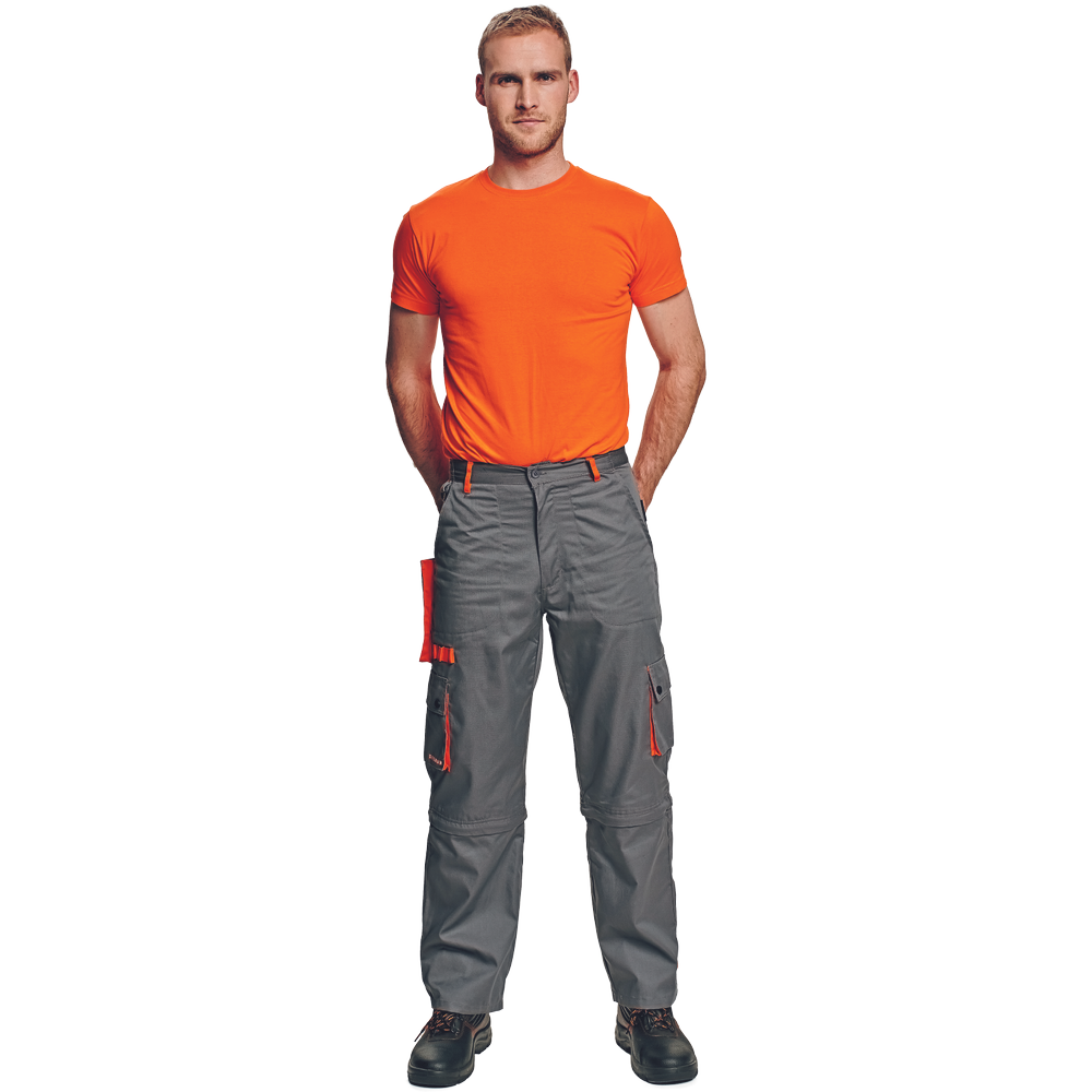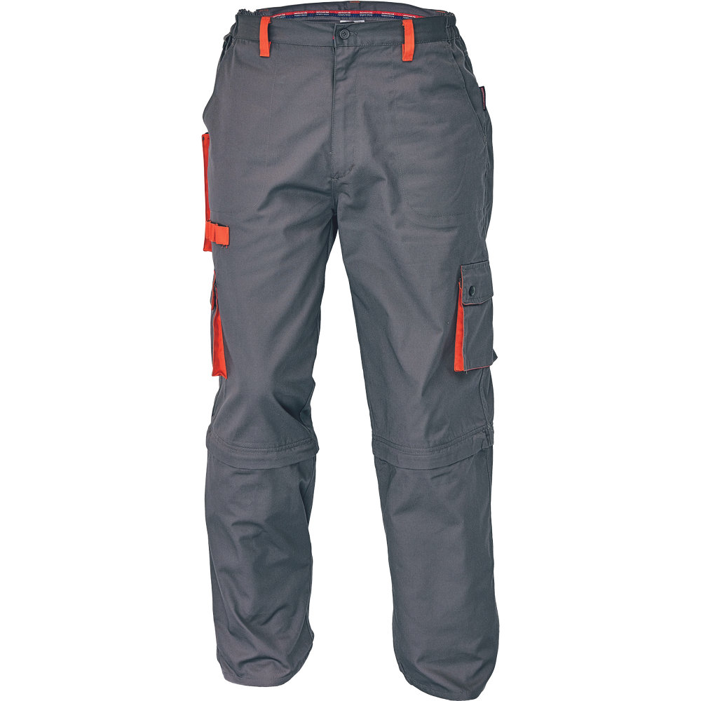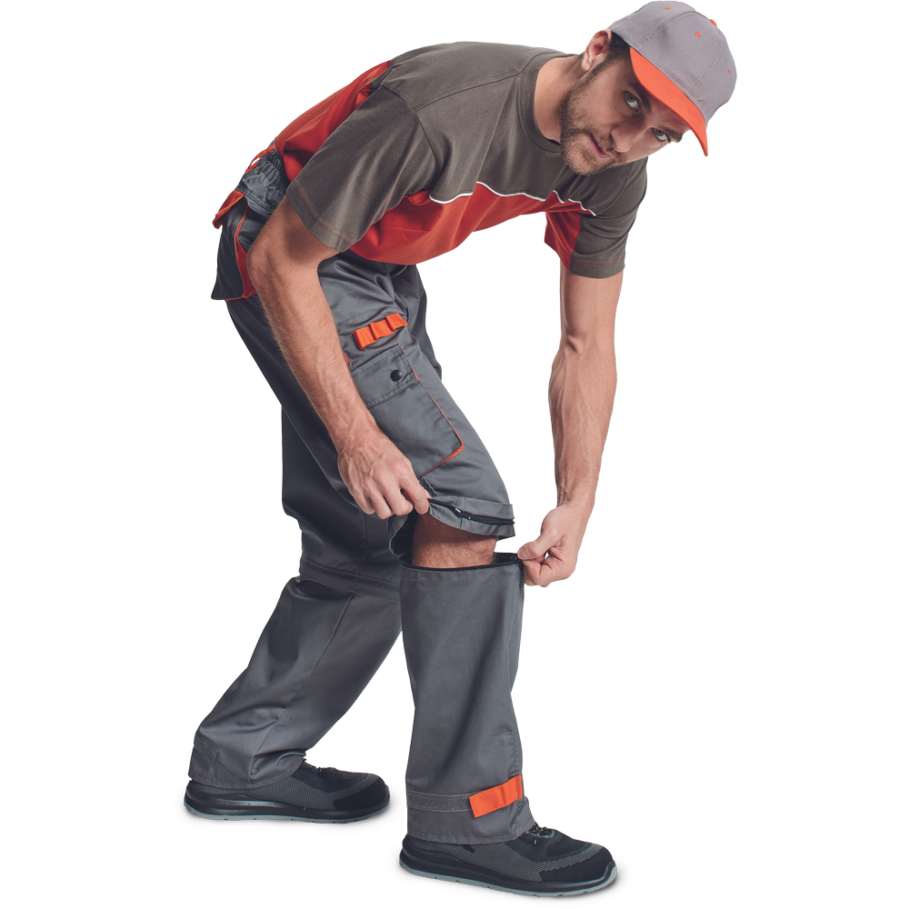 – udobno krojene moške delovne hlače, elastičen pas – 6 funkcionalnih žepov – z zadrgo snemljivi deli goleni – nastavljiva širina spodnjega dela noge s trakom na velcro