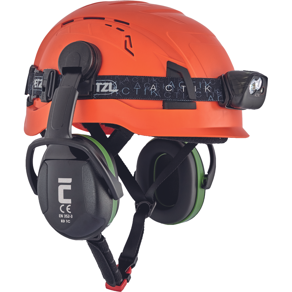 Neprevodni ščitnik sluha z nastavkom za varnostno čelado (30 mm reža), gladko in stabilno teleskopsko nastavljanje velikosti, mehke penaste ušesne blazinice z minimalnim zadrževanjem toplote. Zasnova z drsnimi stremeni zmanjšuje tveganje za zatikanje v zaprtih prostorih, tudi v stanju pripravljenosti. 252 g, EN 352-3:2002; združljiv s čeladami ALPINWORKER in PALLADIO.