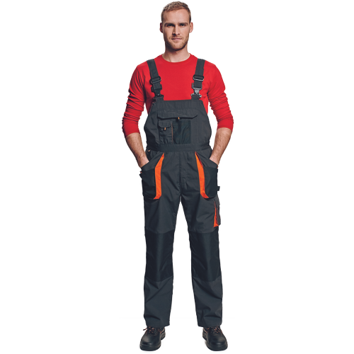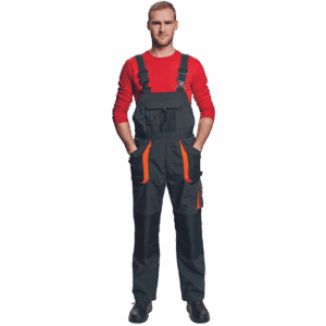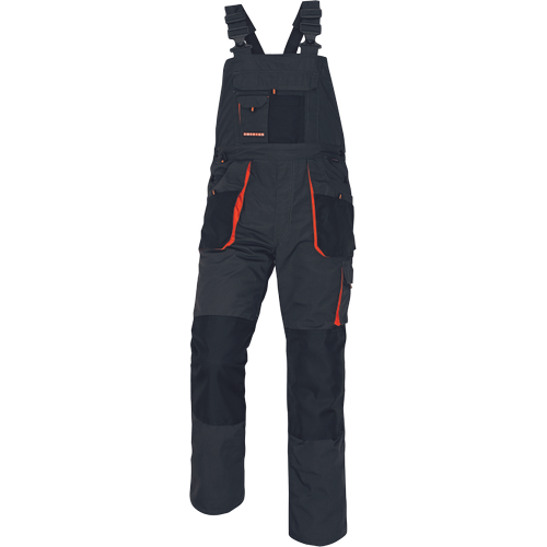 – zimske izolirane delovne hlače z naprsnikom – notranji sloj z bombažno flanelo – večnamenski žepi – poliester Oxford 600D z ojačanimi poudarjenimi deli in kolenskimi deli z žepi za vstavljanje kolenskih blazinic.