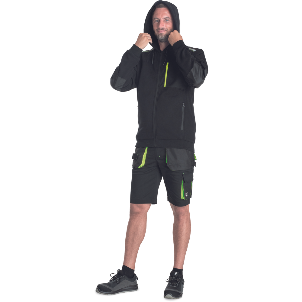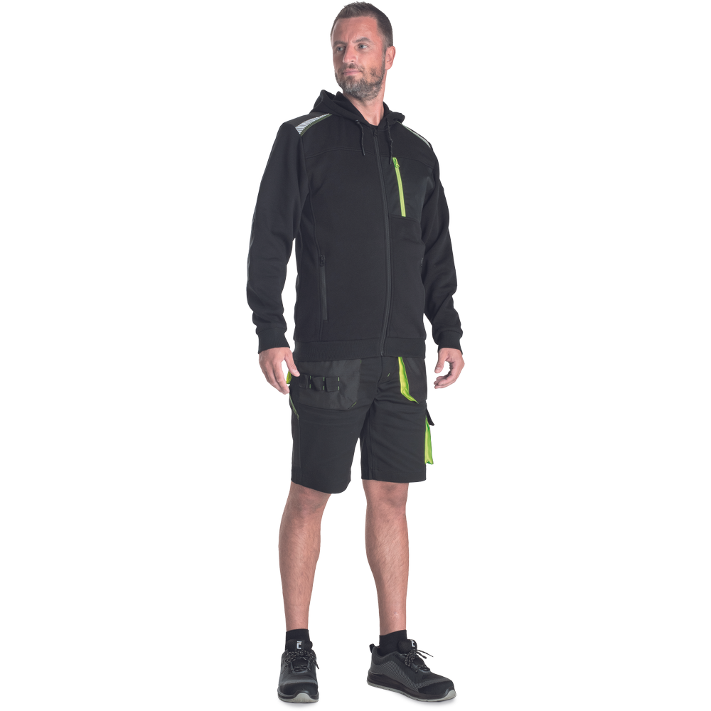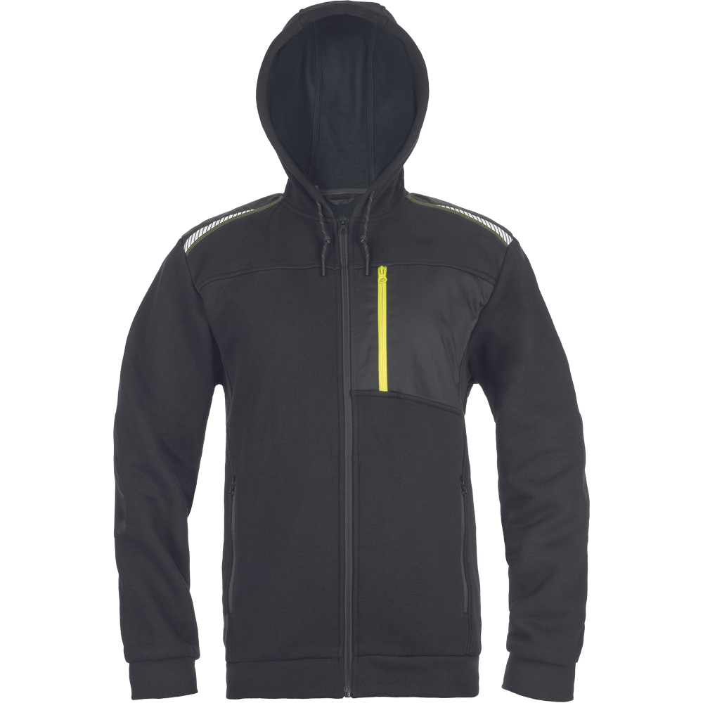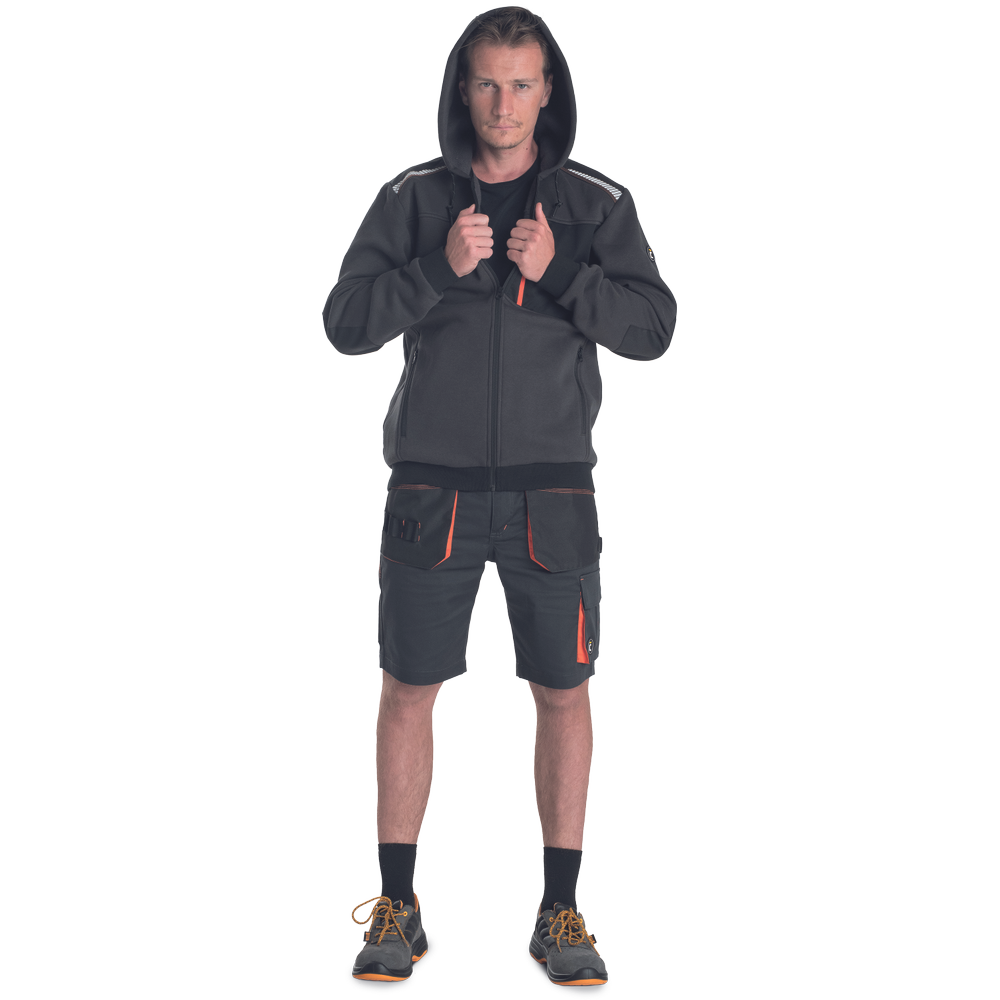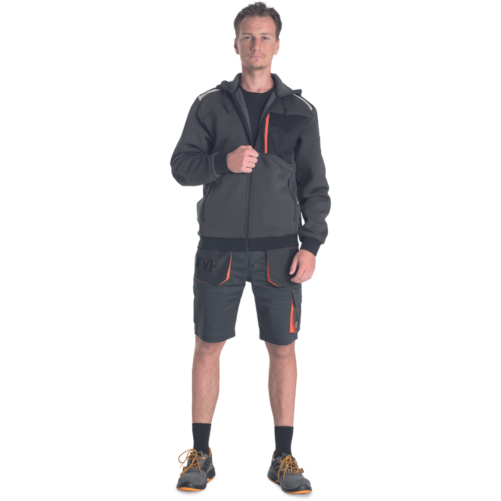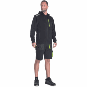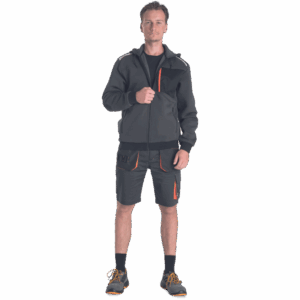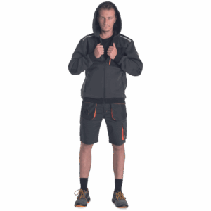– moška kapuca z zadrgo – 2 stranska žepa – 1 prsni žep z zadrgo – ojačana ramena z odsevnimi črtami – elastičen pas in manšete na rokavih