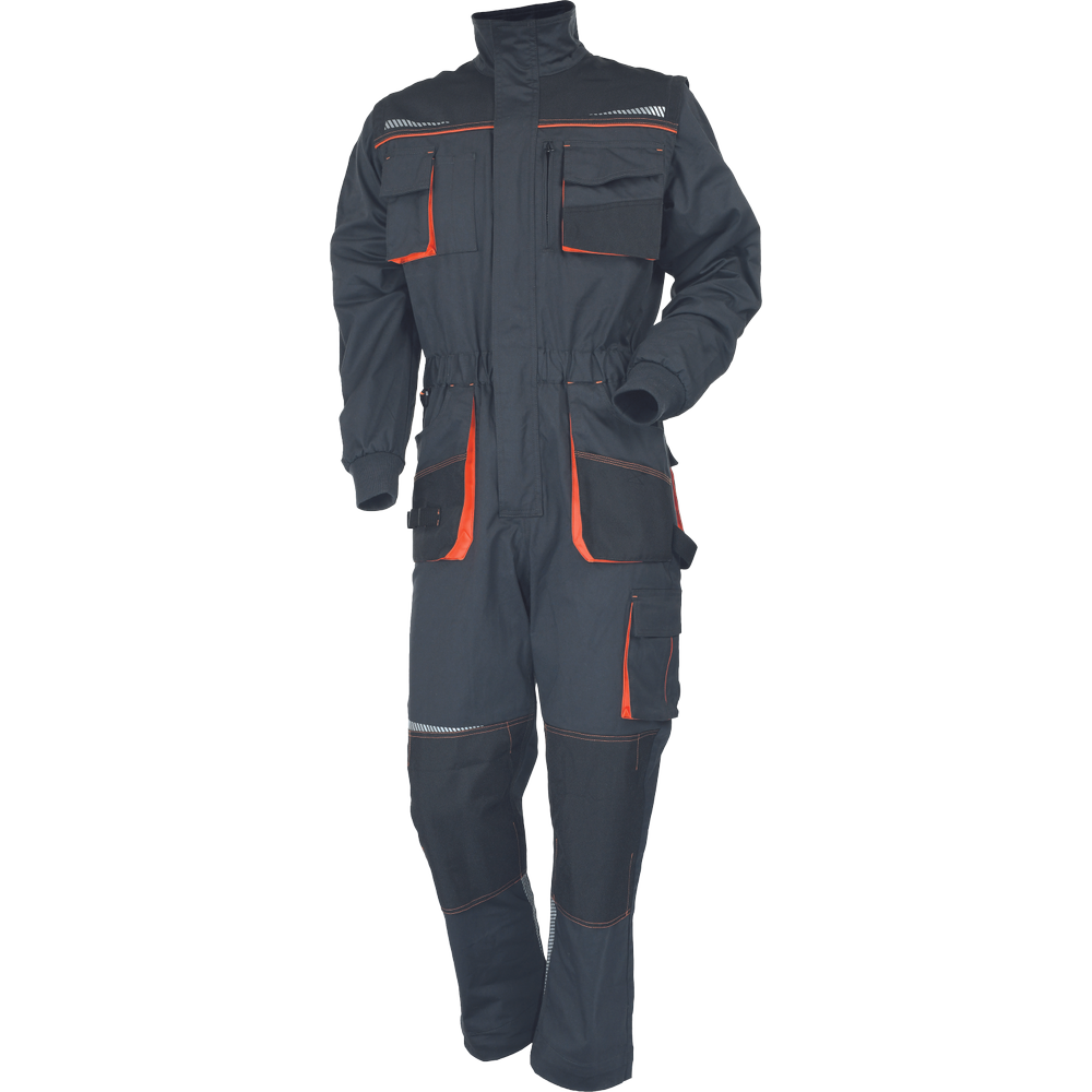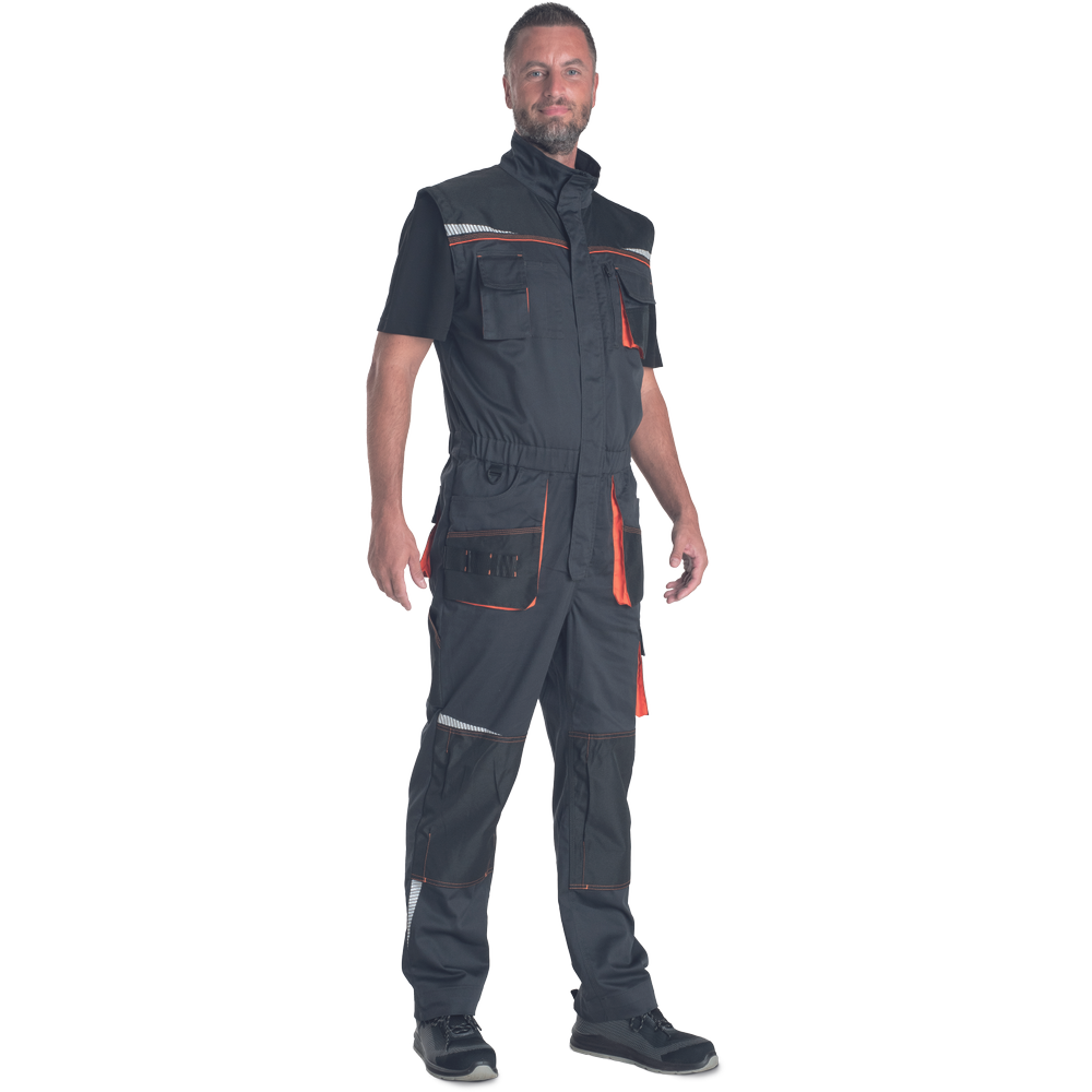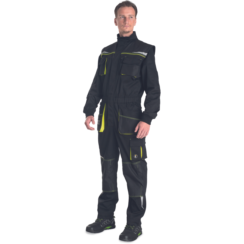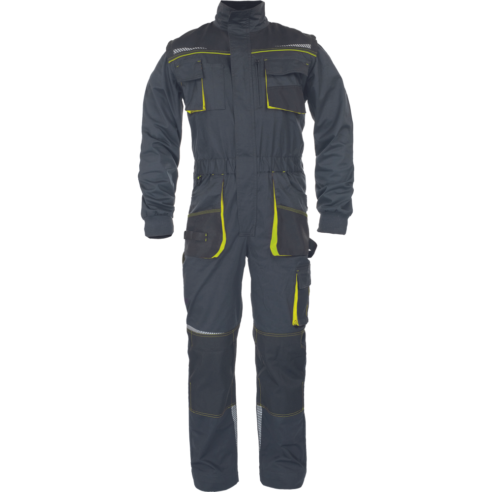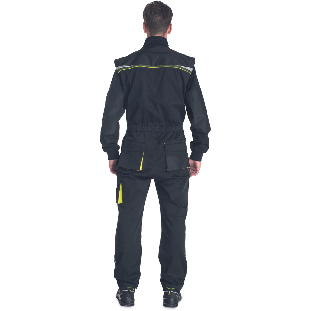 – visoko vzdržljiv elastičen pas – sprednje zapiranje na zadrgo z zaščitnim žepom – večnamenski žepi – 2 prsna žepa, vključno z žepom za mobilni telefon – ojačitev kolenskih žepov Oxford 600D za vstavljanje kolenskih vložkov – snemljivi rokavi s pletenimi elastičnimi manšetami – potiskani odsevni elementi – nastavljiva dolžina nog.