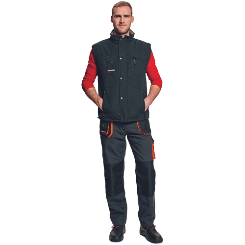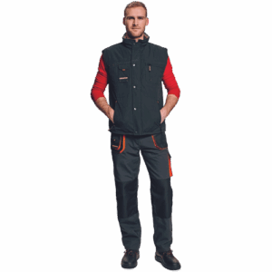 – zimski delovni telovnik z ovratnikom iz flisa in izolacijo iz mikrovlaken – zapiranje na zadrgo s prevleko za plašč – odporen na veter in vodo – 2 sprednja žepa na zadrgo, 2 prsna žepa