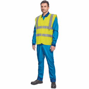 – jopič visoke vidljivosti z dvema vodoravnima odsevnima trakovoma – zapiranje z velcro – primeren za uporabo na območju, zaščitenem pred električnim razbijanjem