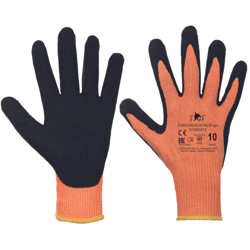 – pletene brezšivne rokavice, na dlaneh in prstih namočene v nitril s peščenim premazom – stopnja zaščite pred prerezom E – primerne za ravnanje z ostrimi in mastnimi predmeti, ravnanje s steklom ali obdelavo mastnih kovinskih delov ali pločevine