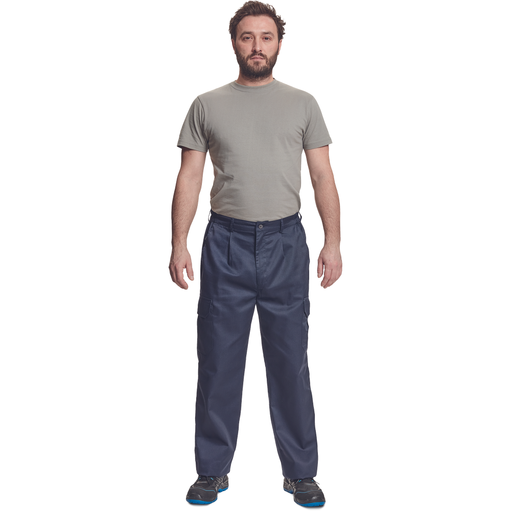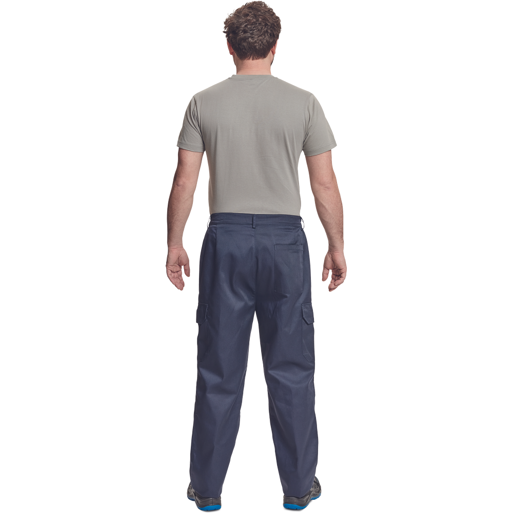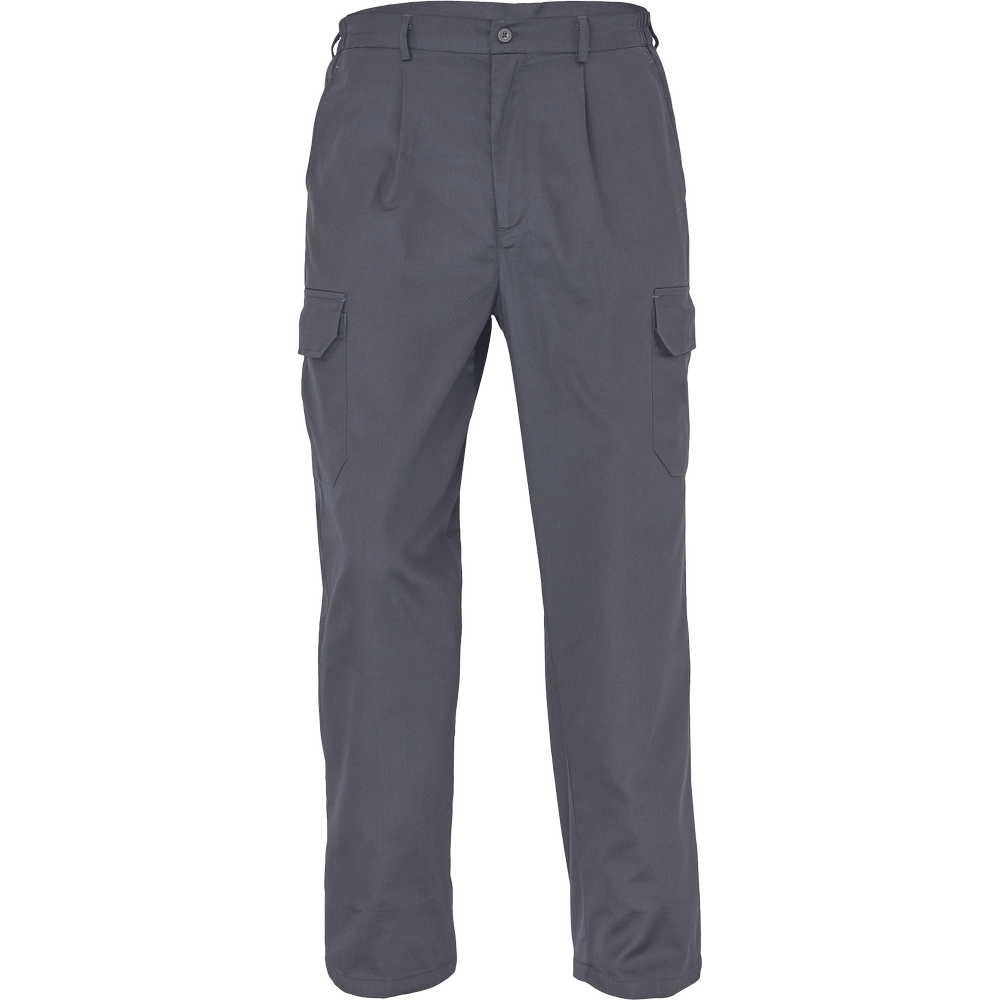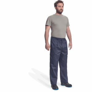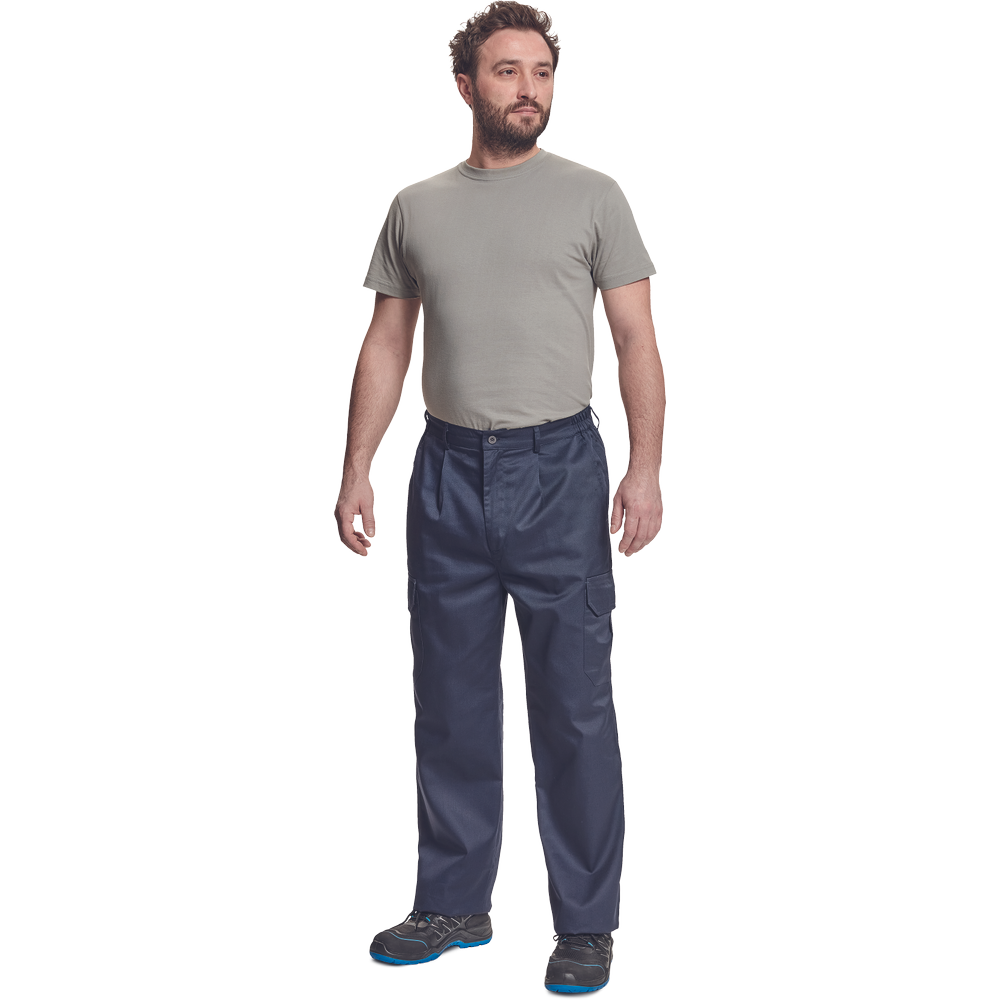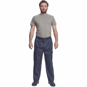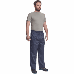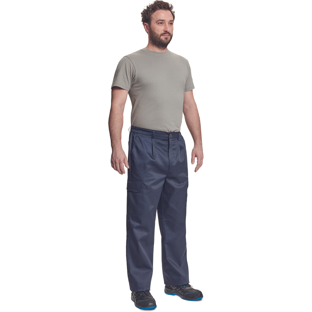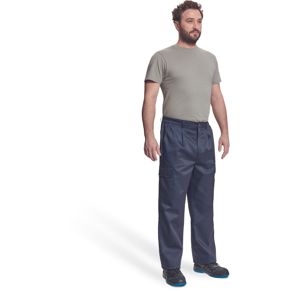 – moške delovne hlače z elastičnim pasom – 2 stranska žepa – 2 stegenska žepa z zavihkom na velcro – 1 zadnji žep z zapiranjem na velcro