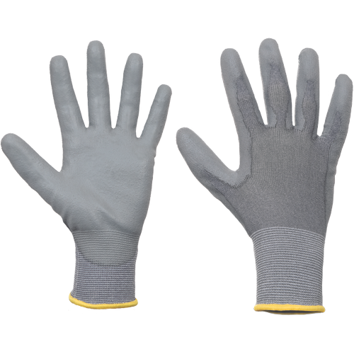 – pletene brezšivne rokavice – stopnja B proti porezovanju – siva PU plast na dlani in prstih – elastična manšeta