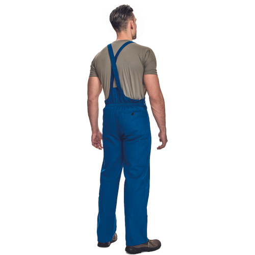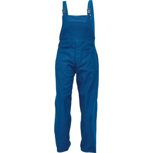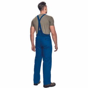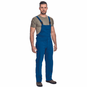 – moške delovne hlače z naprsnikom – 2 stranska žepa, 2 zadnja žepa – 1 prsni žep z zadrgo – naramnice s plastičnimi zaponkami