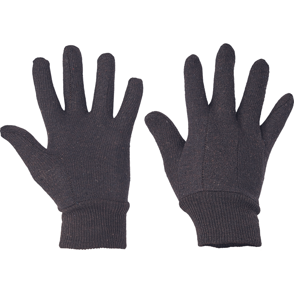 – šivane rokavice z elastično pleteno manšeto iz rjavega bombažnega džersija in poliestra