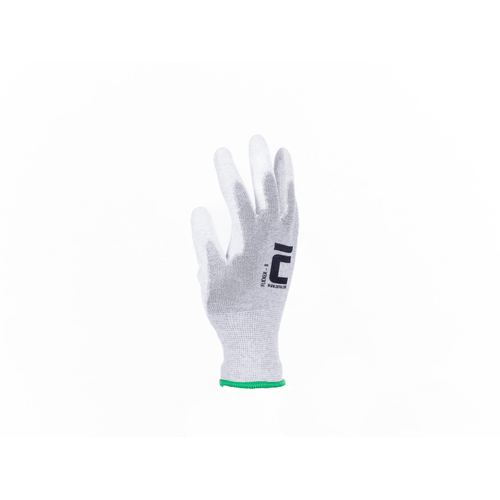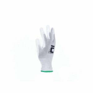 – pletene brezšivne antistatične rokavice iz najlona – integrirana ogljikova vlakna – poliuretanska plast na dlani in prstih – elastična manšeta