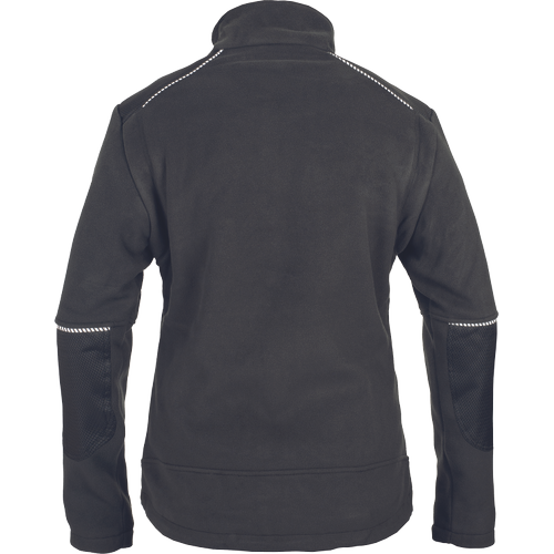 – moška jakna iz flisa modernega kroja – refleksna zadrga spredaj na sredini – Napoleonov žep z zadrgo na desni strani (refleksna zadrga) z odprtino za slušalke – ojačitve Cordura na ramenih in tudi na komolcih – prezračevalni sistem z mrežasto tkanino v notranjosti na pazduhi na zadnji strani – kontrastni šiv v svetlo sivi barvi – prekinjene signalne cevi za varnost in učinek.
