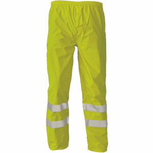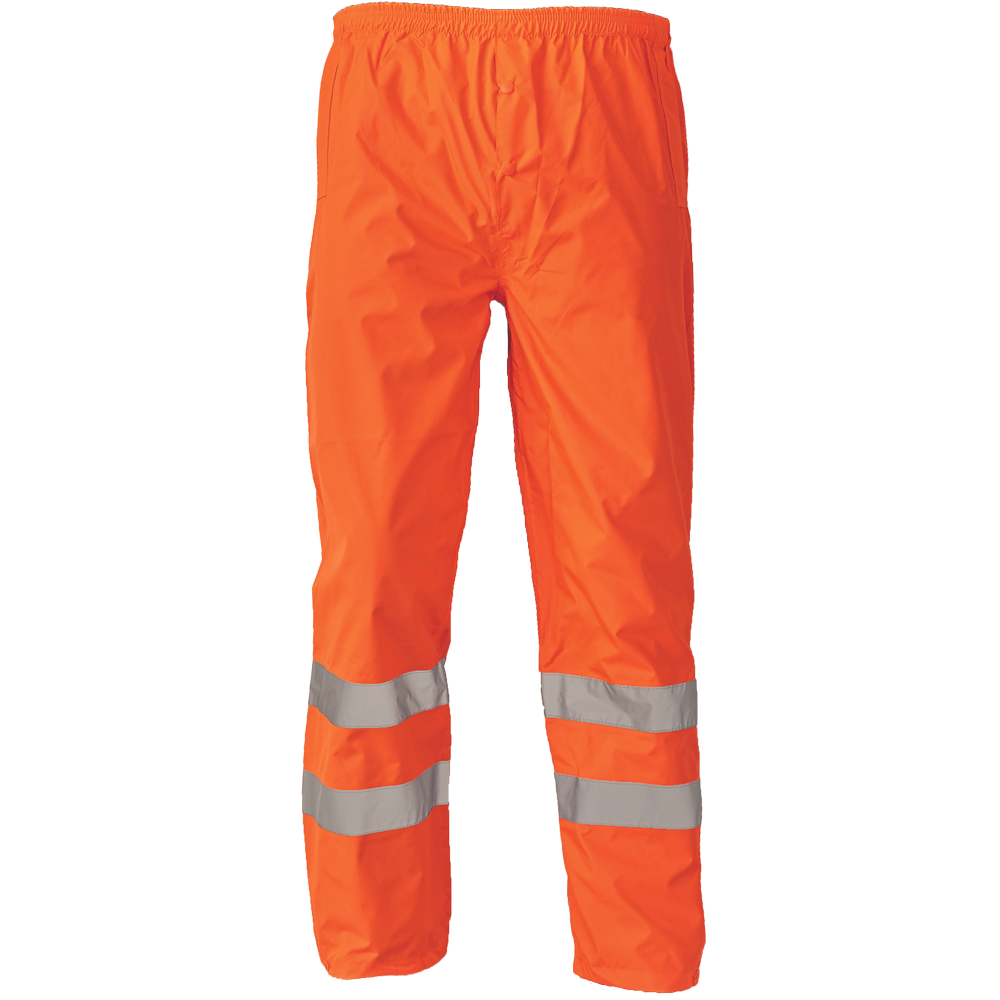 – lahke moške nepremočljive hlače HI-VIS z odsevnimi črtami, elastičen pas – visoka vodoodpornost, prepustne – nastavljivi spodnji robovi nog s plastičnimi zatiči – lepljeni šivi