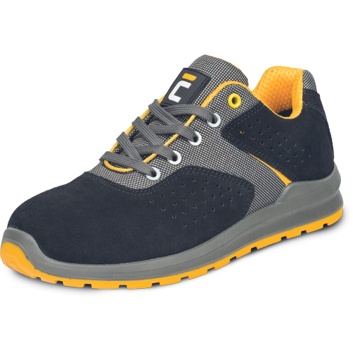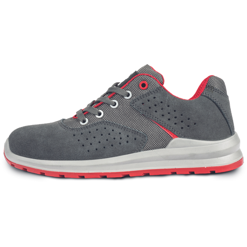 Udobni varnostni čevlji s kompozitnim prstnim pokrovom, certificirani za varnostni razred S1 v skladu s standardom EN ISO 20345:2022. Antistatični vložek. Podplat z dvojno gostoto PU/PU z absorpcijo energije v peti. Trpežen zgornji deljeno semiš usnje v kombinaciji s tkanino oxford s povečano zračnostjo zaradi perforacije. Odlična izbira za dela v zaprtih prostorih, kot so avtomobilska industrija, logistika ali industrijska proizvodnja. Brez kovin.