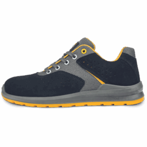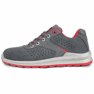 Udobni varnostni čevlji z jeklenim prstnim pokrovom in jeklenim vmesnim podplatom proti penetraciji, certificirani za varnostni razred S1P v skladu s standardom EN ISO 20345:2022. Antistatični vložek. Podplat iz PU/PU z dvojno gostoto z absorpcijo energije v peti. Trpežen zgornji deljeno semiš usnje v kombinaciji s tkanino oxford s povečano zračnostjo zaradi perforacije. Odlična izbira za dela v zaprtih prostorih, kot so avtomobilska industrija, logistika ali industrijska proizvodnja.
