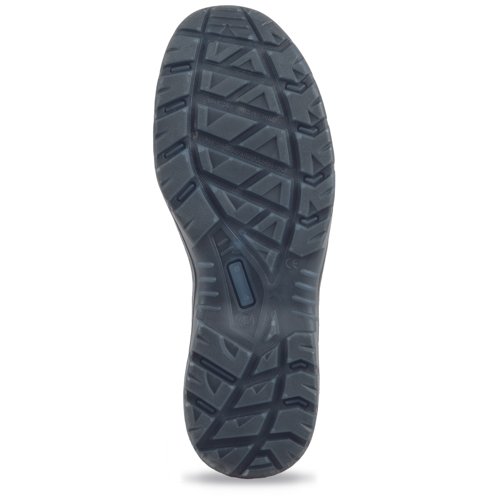 Varnostni sandal v sodobni modro-črni barvni kombinaciji. Zgornji del čevlja je izdelan iz mikrovlaken in perforiran po celotni dolžini. Nedrseči podplat, odporen na olje, je izdelan iz prozornega termopoliuretana. Podplat zagotavlja ne le udobje, temveč tudi največjo varnost na vsakem koraku. Čevlji so opremljeni z udobnim perforiranim notranjim vložkom, ki zagotavlja udobje in kroženje zraka v čevlju. Absorpcija energije v predelu pete blaži udarce in zmanjšuje občutek utrujenosti stopal. Zahvaljujoč varnostni kompozitni kapi za prste obutev izpolnjuje zahteve standarda EN ISO 20345: 2011. To pomeni, da so stopala zaščitena pred pritiskom s silo do 15 kN ali padcem bremena do 20 kg z višine 1 m. Stopala so zaščitena tudi od spodaj, zahvaljujoč kompozitnemu vmesnemu podplatu proti predrtju. Čevlji ne vsebujejo kovinskih delov in so opremljeni s funkcijo ESD. Zato je to idealen model za notranje prostore in s ensitive okolja, kjer je treba preprečiti iskre zaradi elektrostatične razelektritve, ali za prostore, opremljene z varnostnim okvirjem. Obutev bo primerna za zaposlene z visokim podplatom, saj je zaradi zelo udobnega zapenjanja z velcro mogoče zgornji del obutve prilagoditi točno po meri in tako doseči največje udobje med delom.