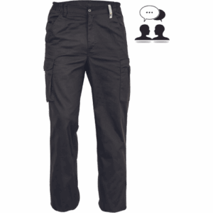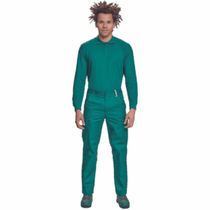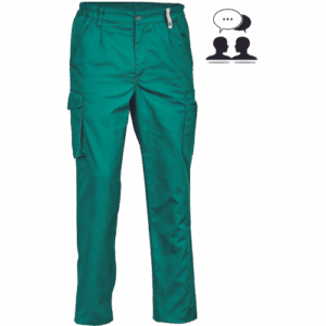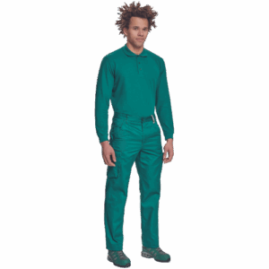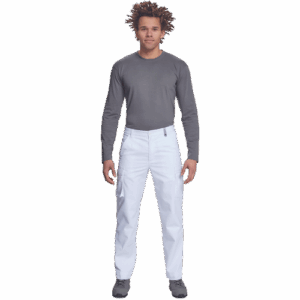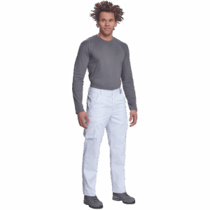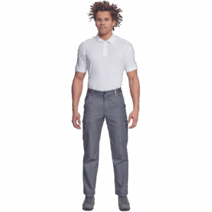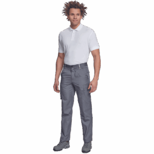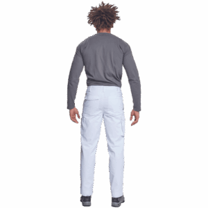 – lahke moške delovne hlače z elastičnim pasom ob straneh – 2 stranska žepa – 1 žep za kovance – 2 večnamenska žepa na stegnih – 2 zadnja žepa – podaljšana dolžina nog