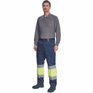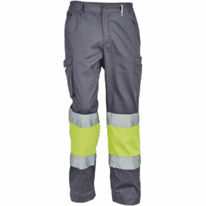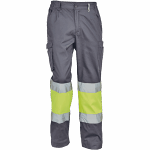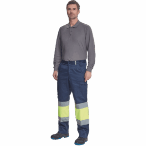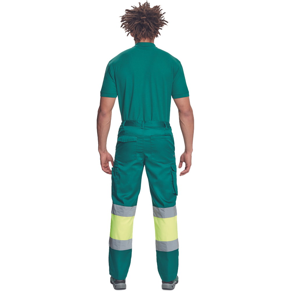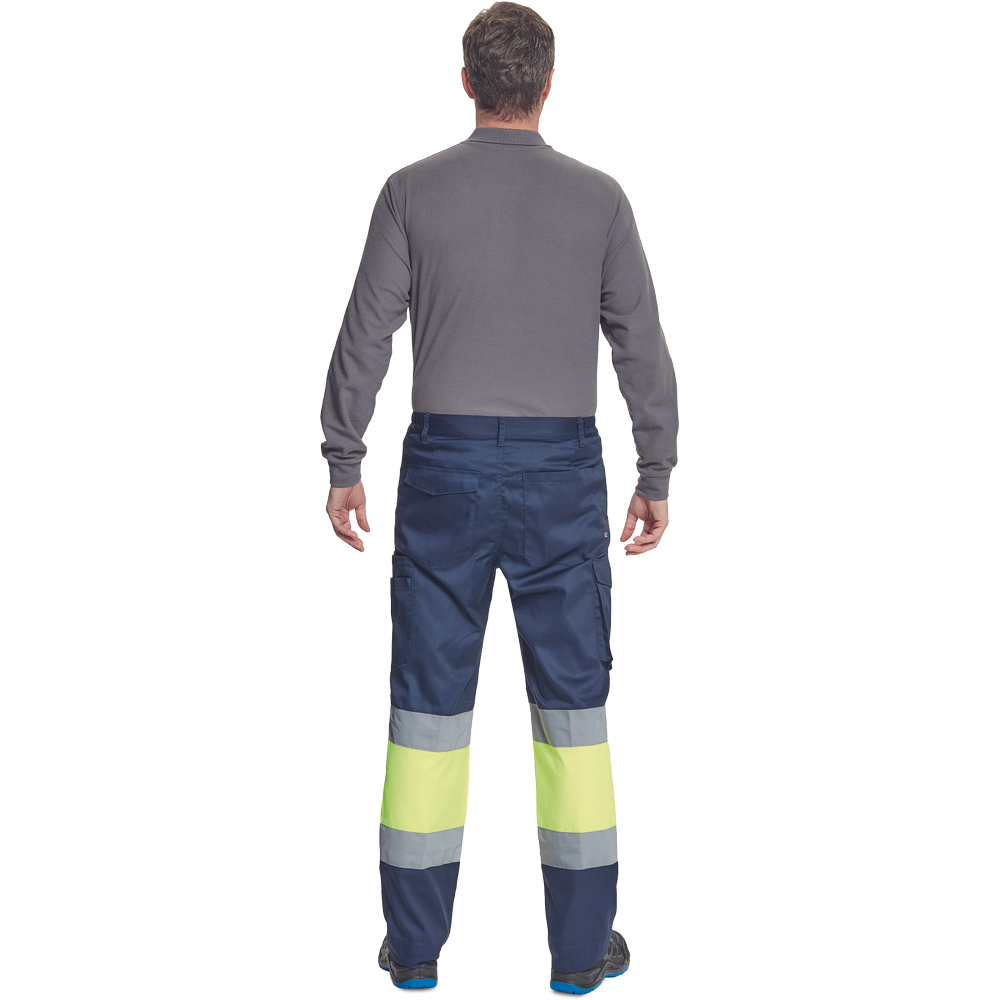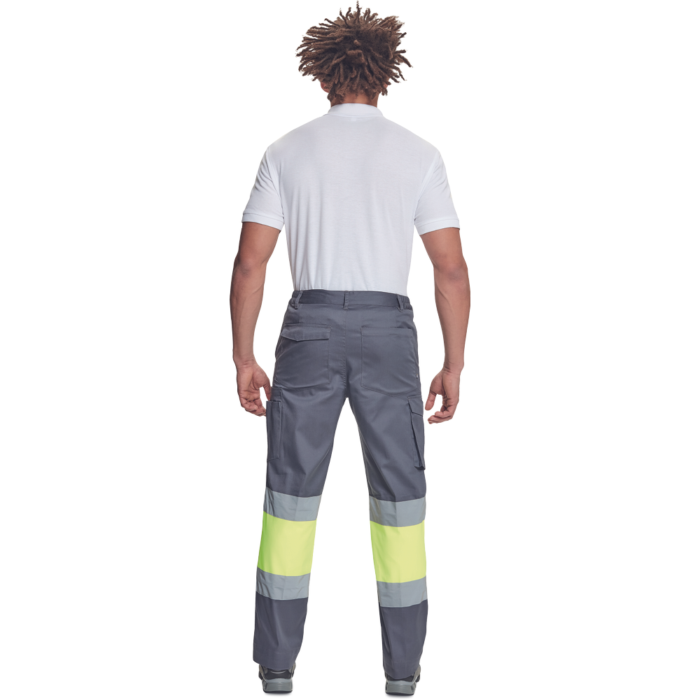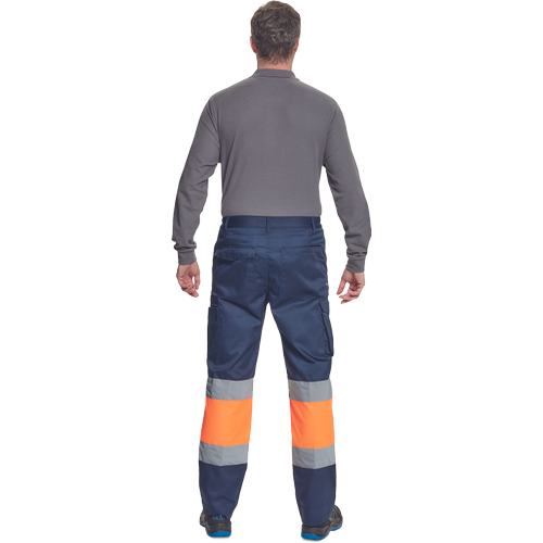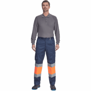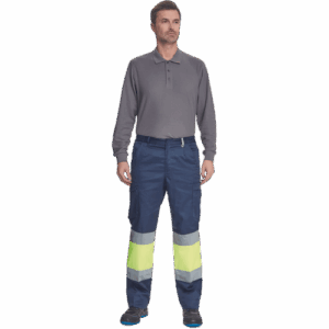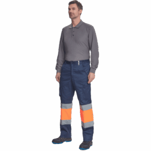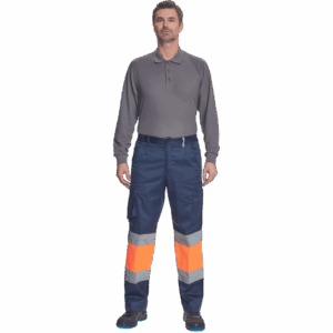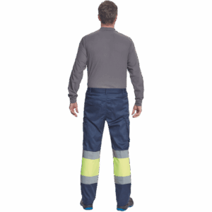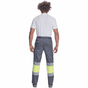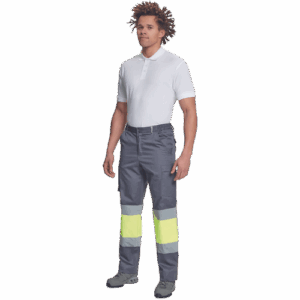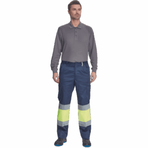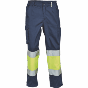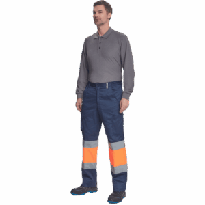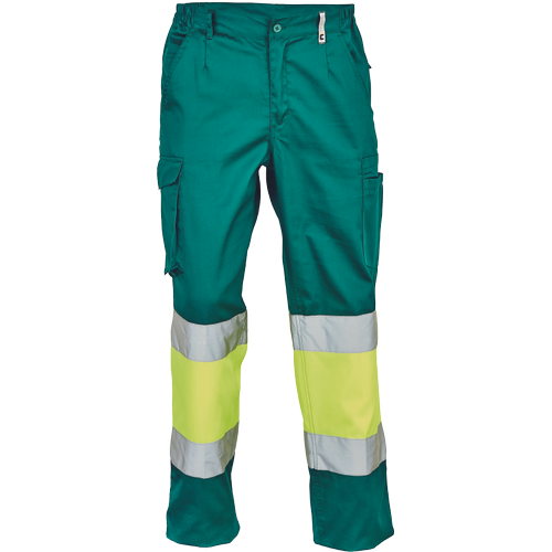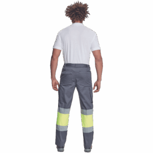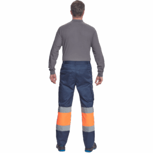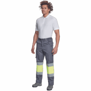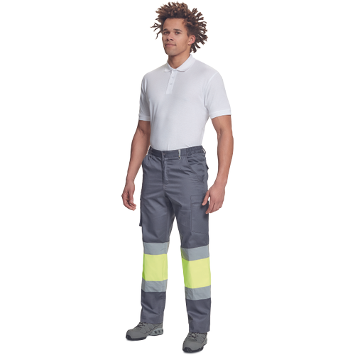– lahke moške delovne hlače v kombinaciji z delom HI-VIS in odsevnimi črtami – elastičen pas – 2 stranska žepa – 1 žep za kovance – 2 žepa na stegnih – 2 zadnja žepa – podaljšana dolžina nog