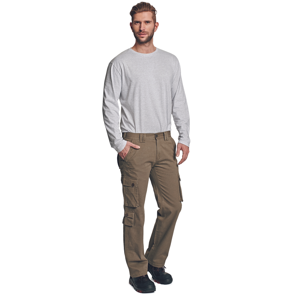 – moške bombažne hlače za prosti čas in dejavnosti na prostem – sodoben kroj z modno zasnovo in funkcionalnimi podrobnostmi – 2 sprednja žepa, 2 žepa s poklopcem na stegnu – 1 majhen kolenski žep, 2 zadnja žepa