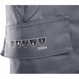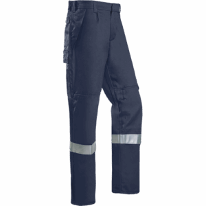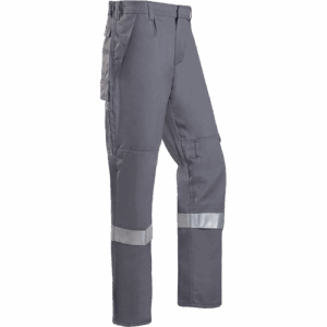– moške hlače z zaščito ARC – negorljive in antistatične – spredaj zadrga – elastičen pas – 2 stranska žepa z zatičem, skrita pod zavihkom – 1 zadnji žep z zatičem, skrit pod zavihkom – 1 zadnji žep na desnem stegnu z zatiči, skrit pod zavihkom – kolenska žepa za vstavljanje kolenskih blazinic – negorljive odsevne črte okoli spodnjega dela nog – primerno za varjenje