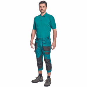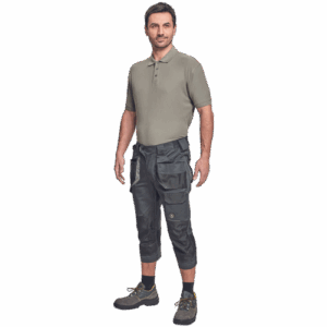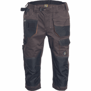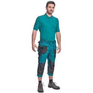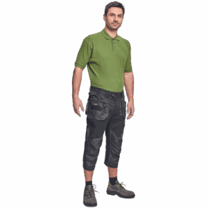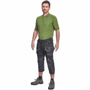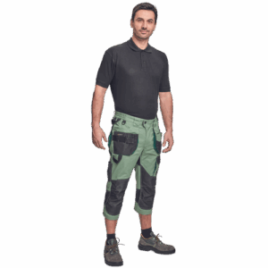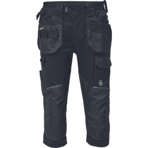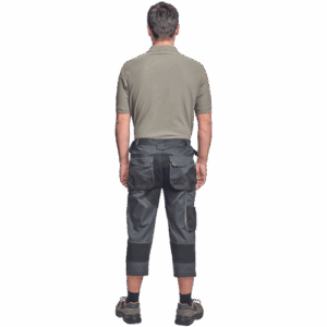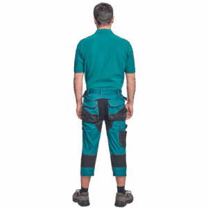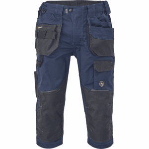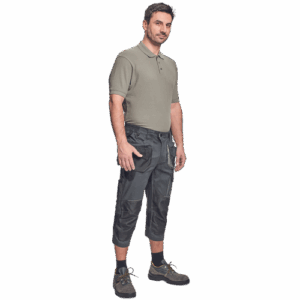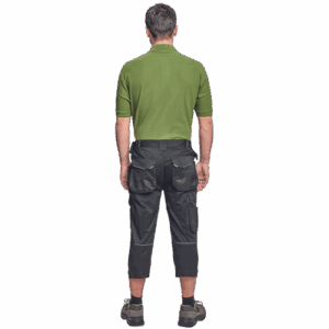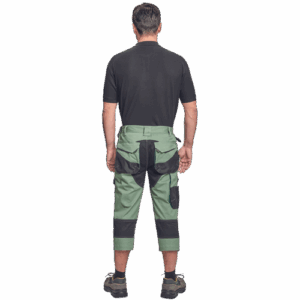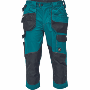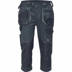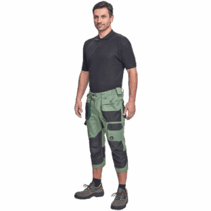 – moške delovne 3/4 hlače z elastičnim pasom – elastična inovativna tkanina TRIFIBETEX® – trpežni trojni šivi na nogah in v mednožju – ojačani deli kolen Oxford 600D z vhodom za kolenske blazinice – prostorni večnamenski sprednji žepi s trakom za orodje – odsevni elementi ton v tonu