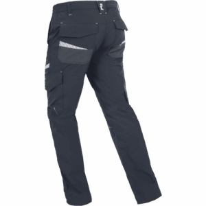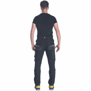 – moške delovne hlače z elastičnim pasom – lahek raztegljiv material za udobno prileganje – 2 stranska žepa – 2 žepa na stegnih – 2 zadnja žepa – ojačani deli kolen Oxford 600D – odsevni elementi – nastavljiva dolžina noge