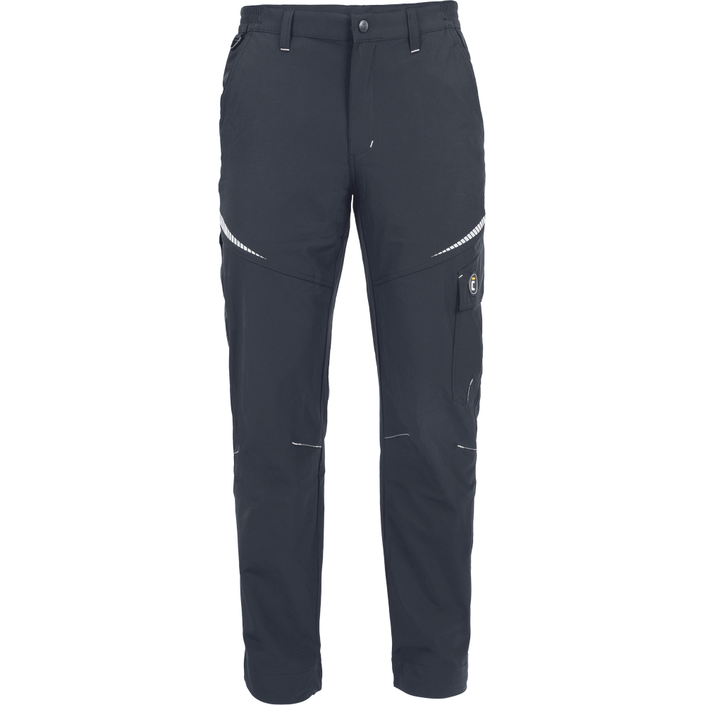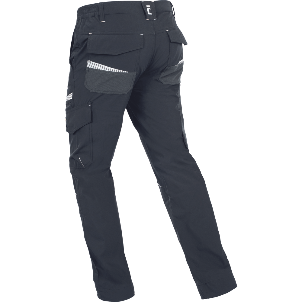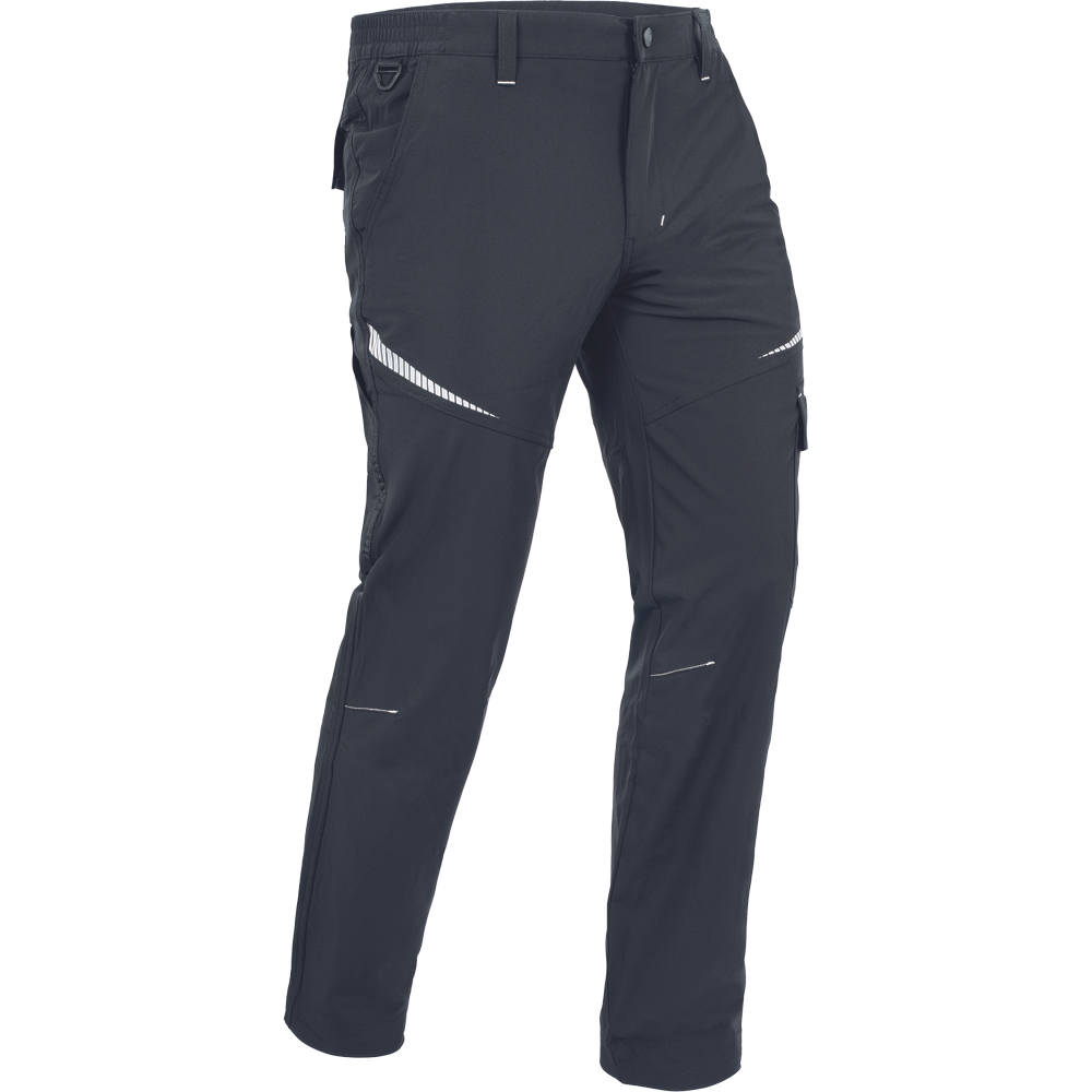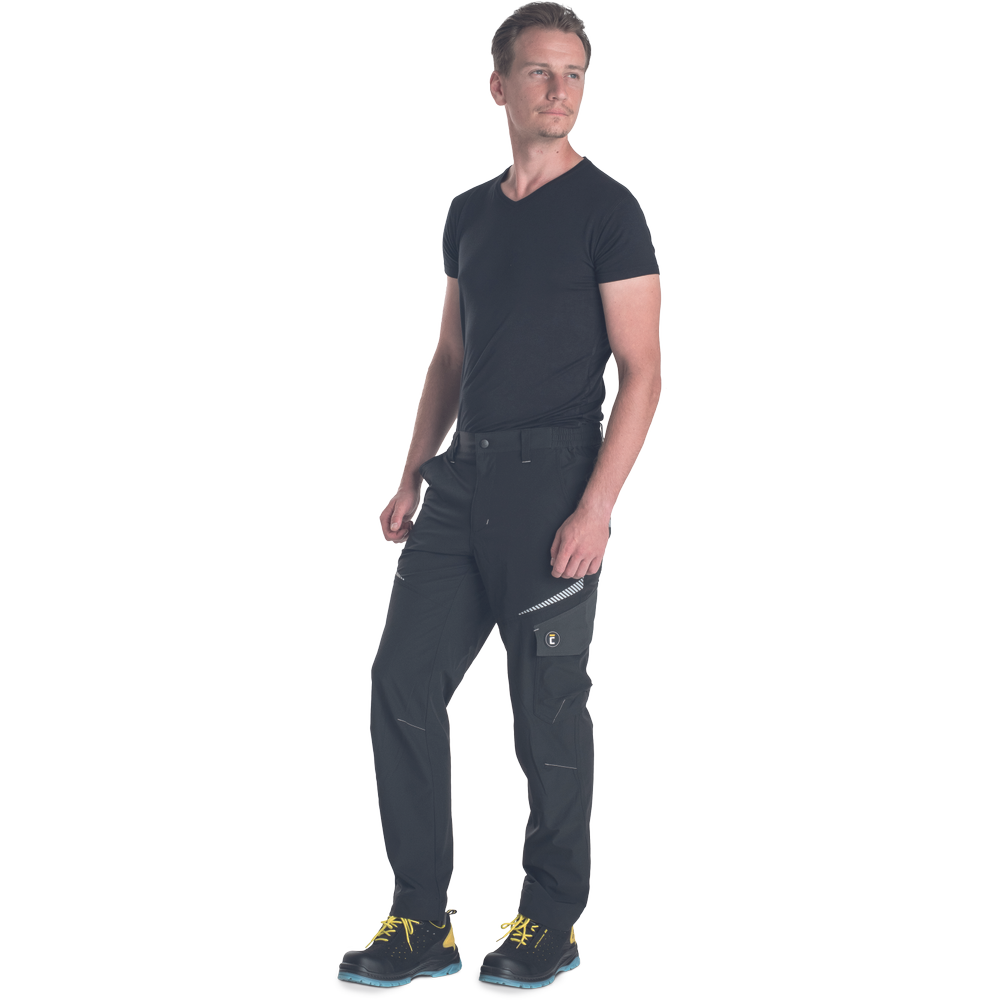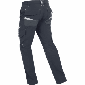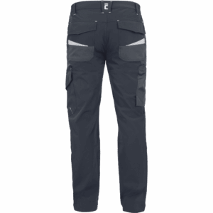– moške delovne hlače z elastičnim pasom – lahek raztegljiv material za udobno prileganje – 2 stranska žepa – 2 žepa na stegnih – 2 zadnja žepa – ojačani deli kolen Oxford 600D – odsevni elementi – nastavljiva dolžina noge
